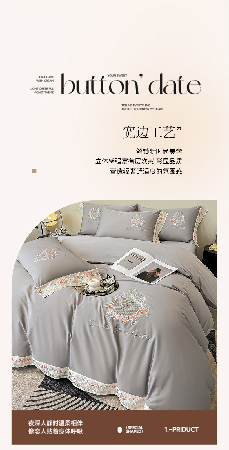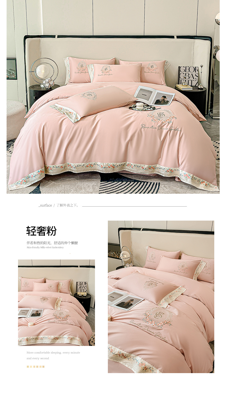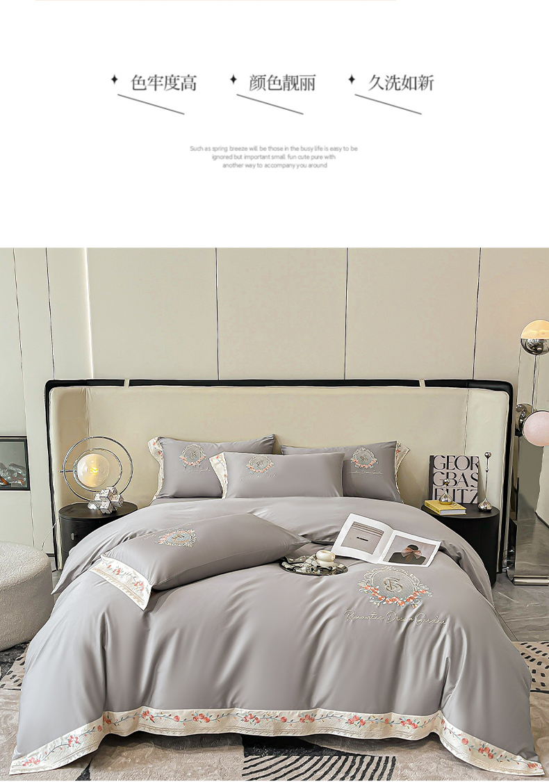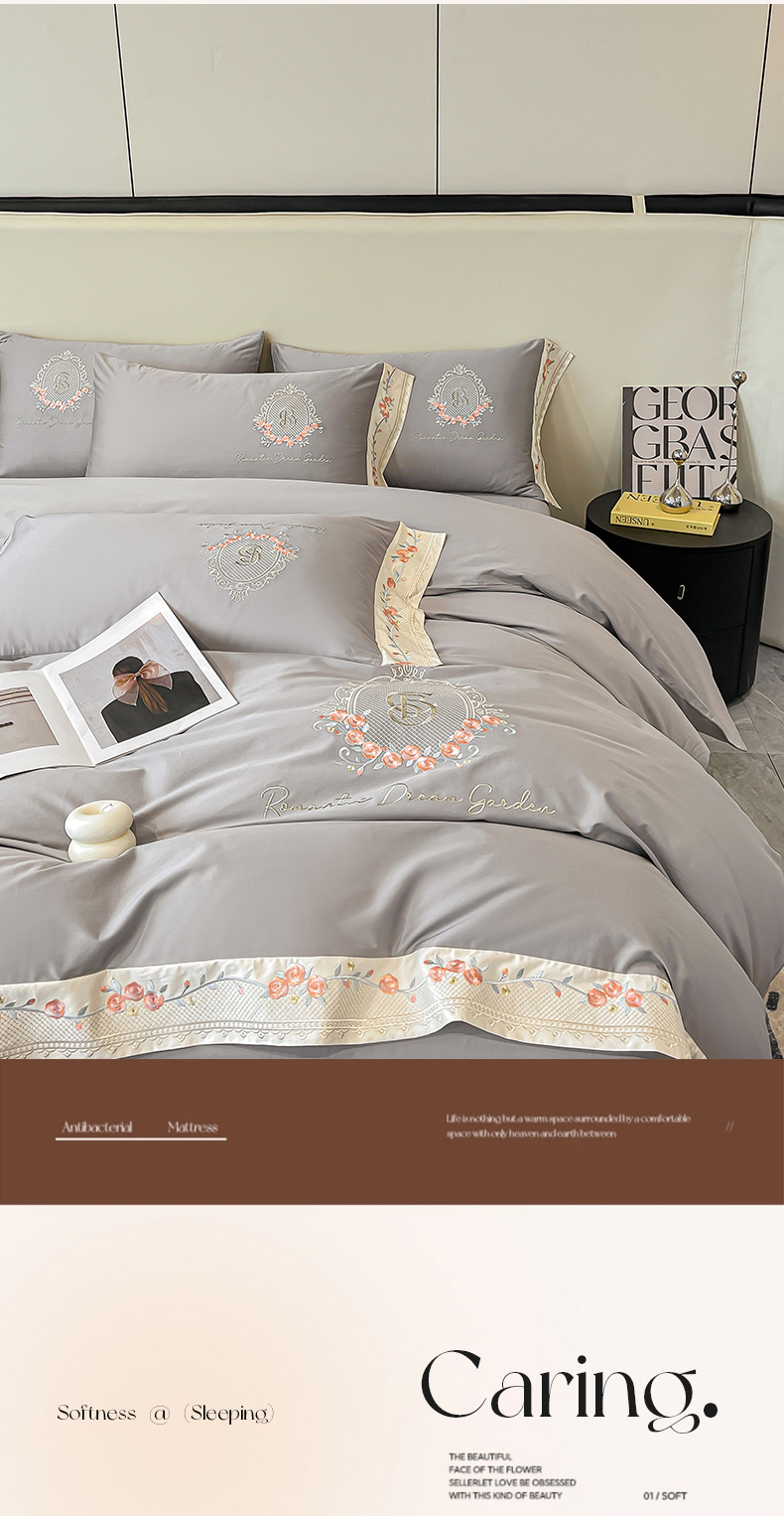 (总)欣宜家纺 2026春夏新款60支A类新疆长绒棉刺绣全棉四件套纯棉床品套件,玛丽-香芋紫,玛丽-梦幻蓝,玛丽-奶白,玛丽-轻奢粉,玛丽-石灰