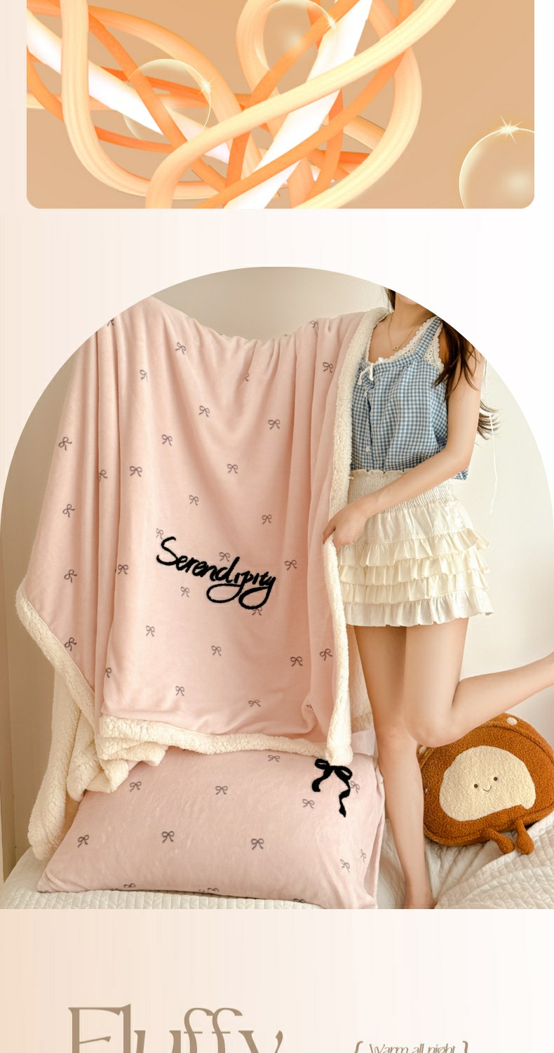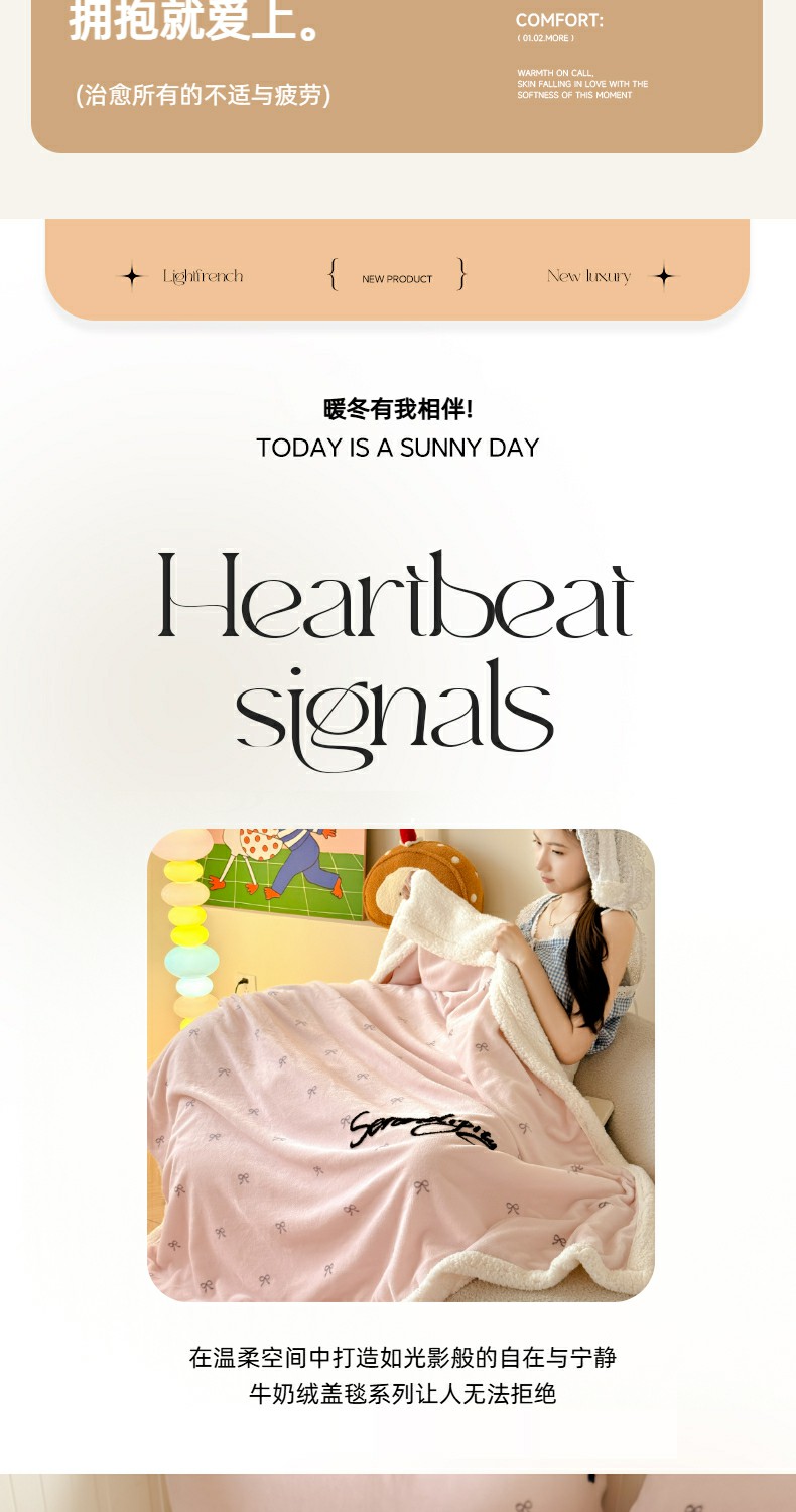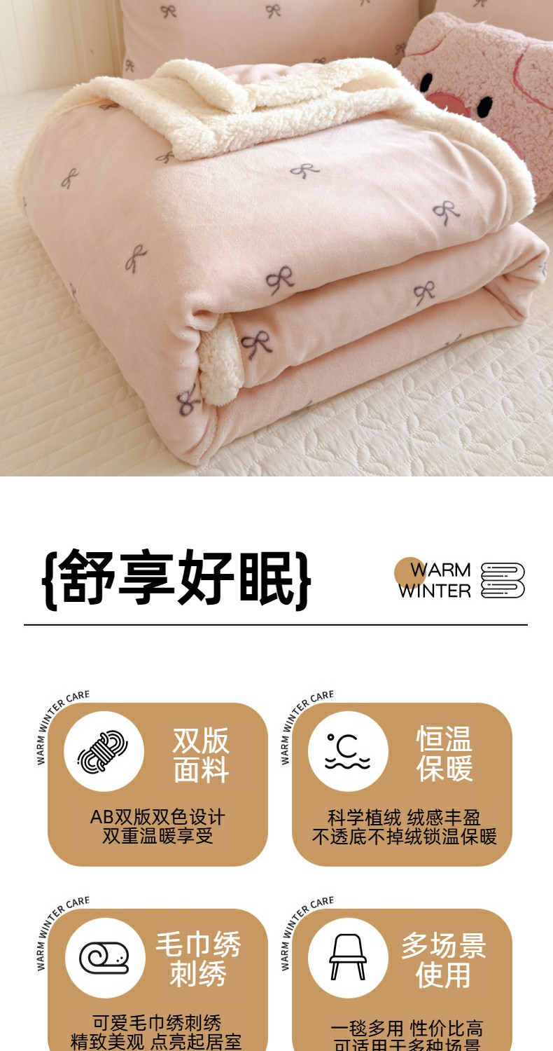 商品名称:欣宜家纺 2025新款加厚毛巾刺绣牛奶绒羊羔绒盖毯双层毛毯午休毯卡通多功能沙发办公室毯子 甜心粉盖毯