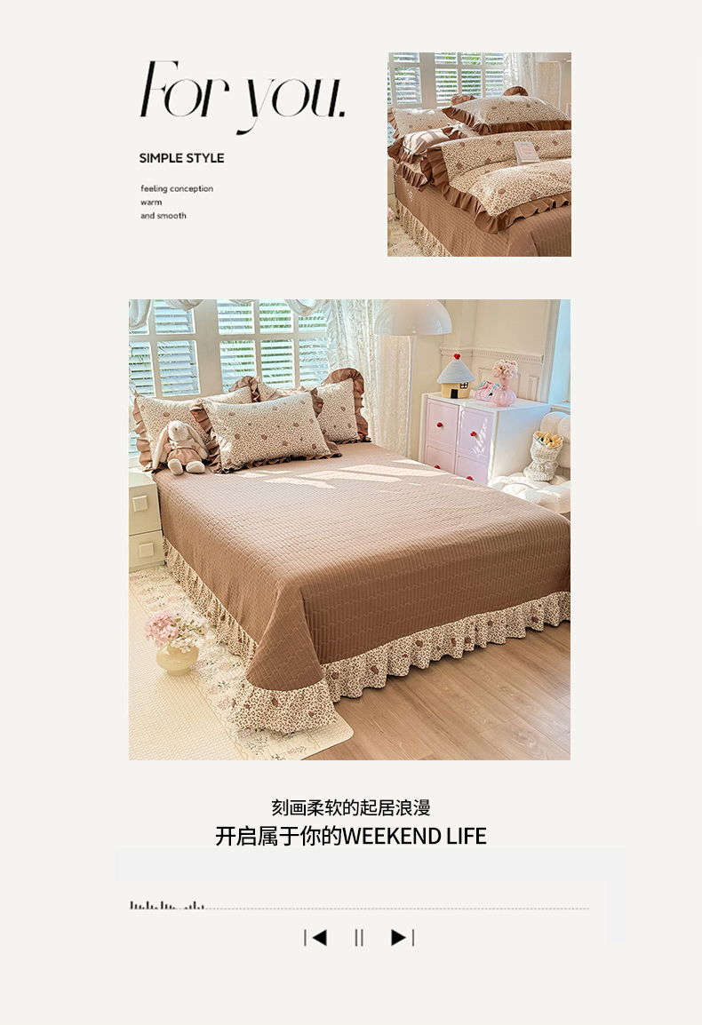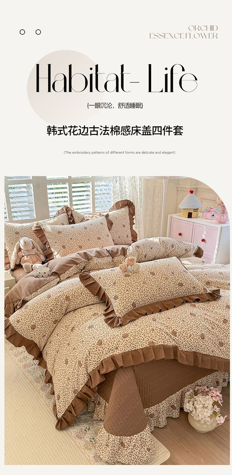 当前位置: 91家纺网 > 商品网购 > 床品套件 > 四件套 > 化纤普通四件套 > 韩约家纺 2026新款韩式花边古法棉感床盖四件套 萝莉