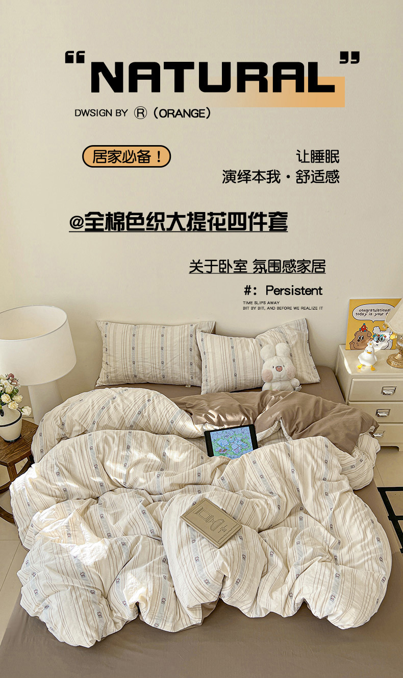 (总)锦彩家居 2026新款全棉色织大提花四件套-南法假日系列(提供买家秀),洛川-咖,洛川-灰,知遇-暖橘,知遇-蓝,叶茂-灰,叶茂-咖
