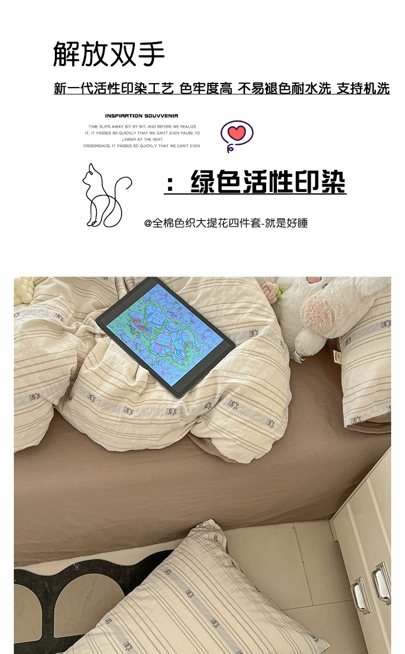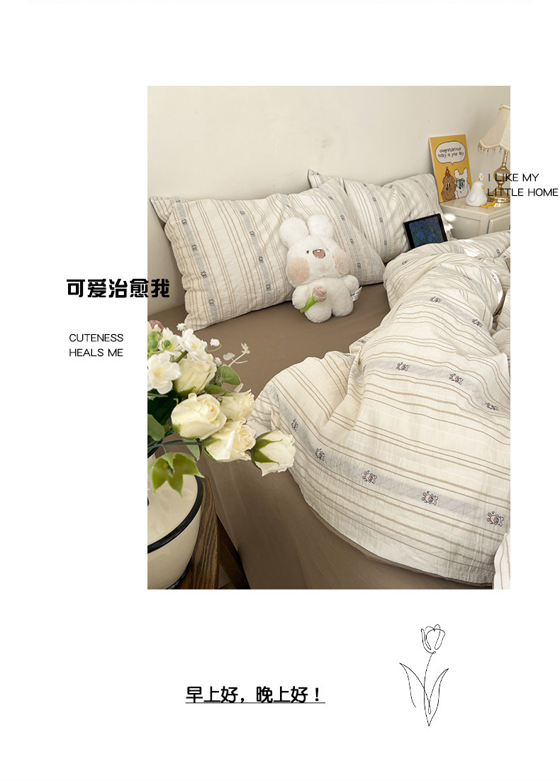 锦彩家居 2026新款全棉色织提花剪花四件套小清新ins风小红书推荐——甜悠系列(提供买家秀) 可爱兔-咖