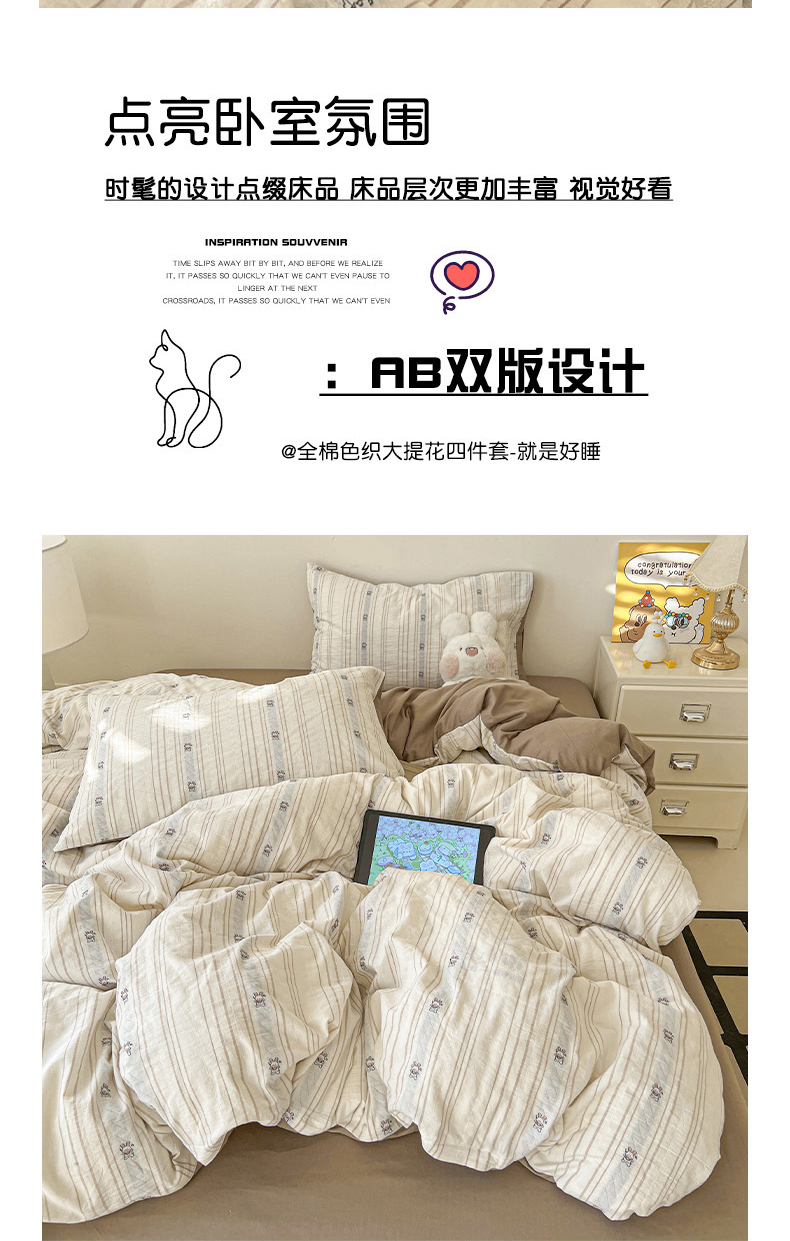 (总)锦彩家居 2026新款全棉色织提花剪花四件套小清新ins风小红书推荐——甜悠系列(提供买家秀),可爱兔-粉,花颜-咖,花颜-蓝,可爱兔-咖,小南瓜-灰,小南瓜-咖