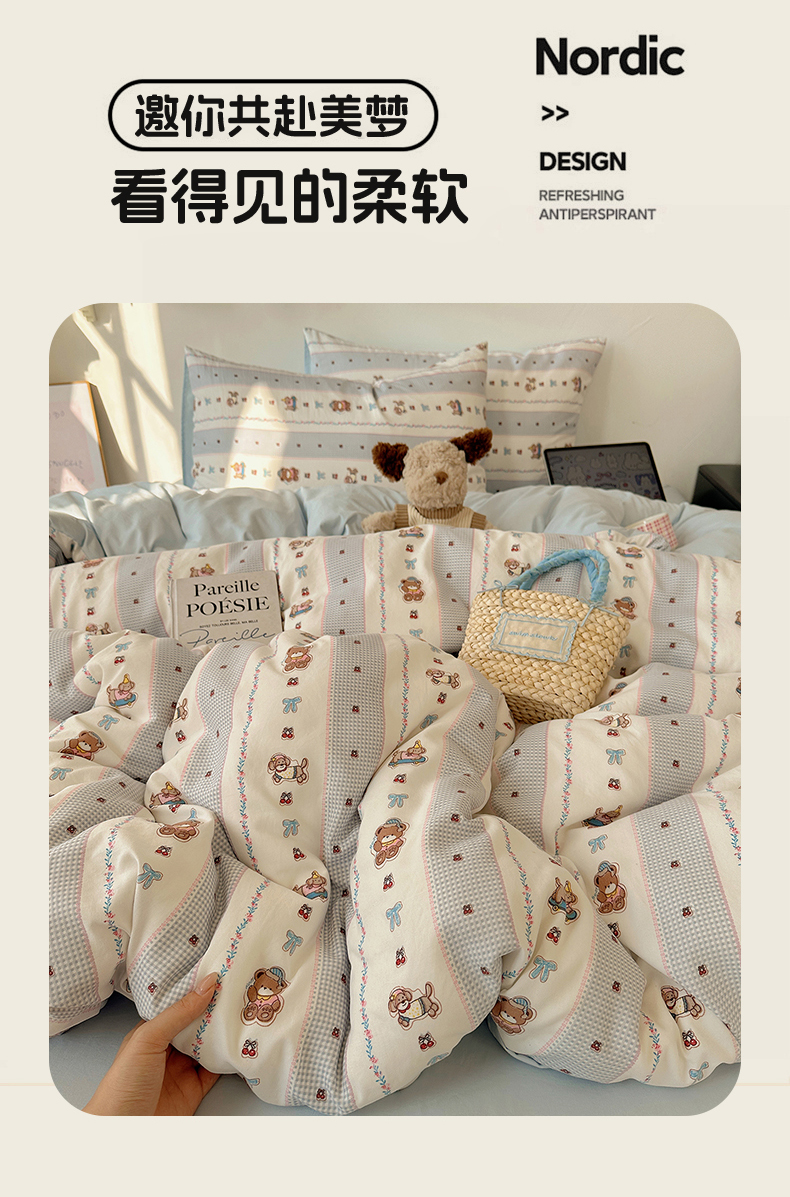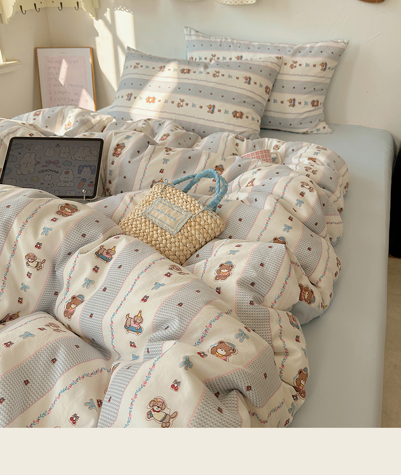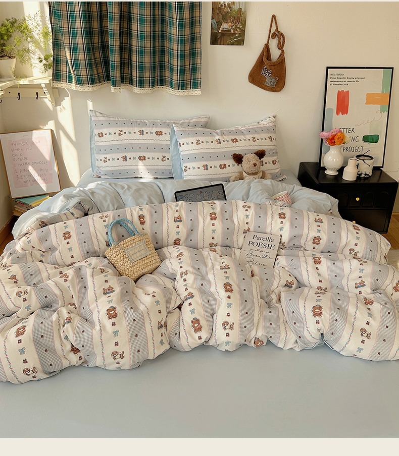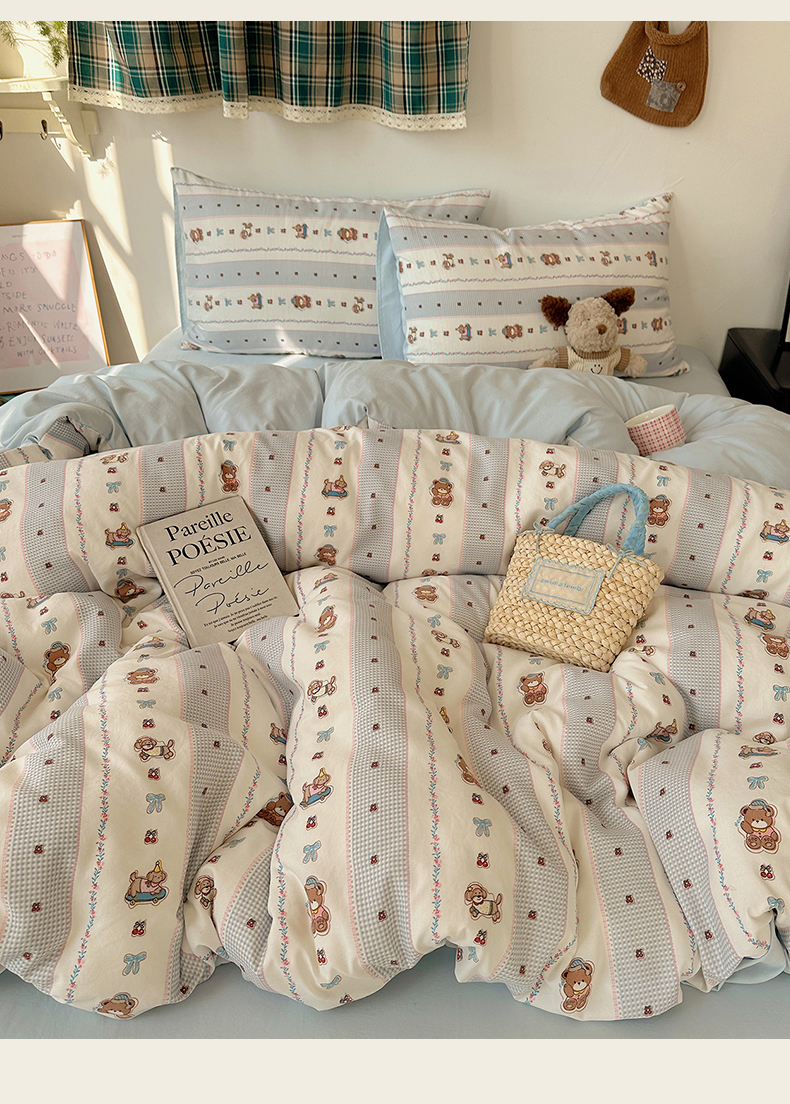 当前位置: 91家纺网 > 商品网购 > 床品套件 > 四件套 > 水洗棉四件套 > 沐芷 2026 【提供买家秀】水洗棉四件套A类简约小清新床上用品床笠款被套床单三件套被罩卡通可爱 蓝色假日