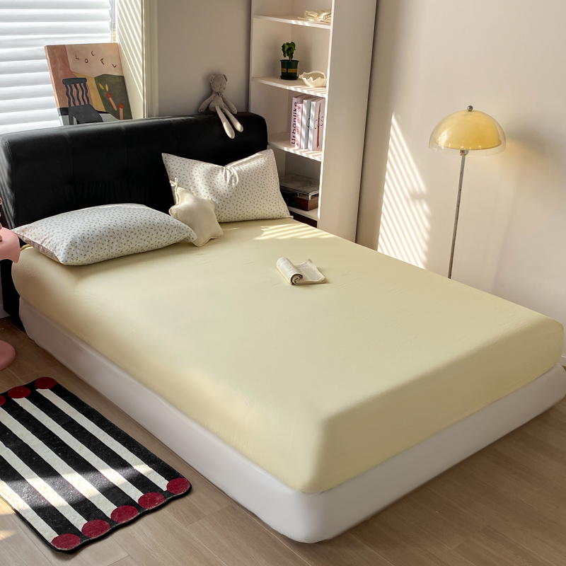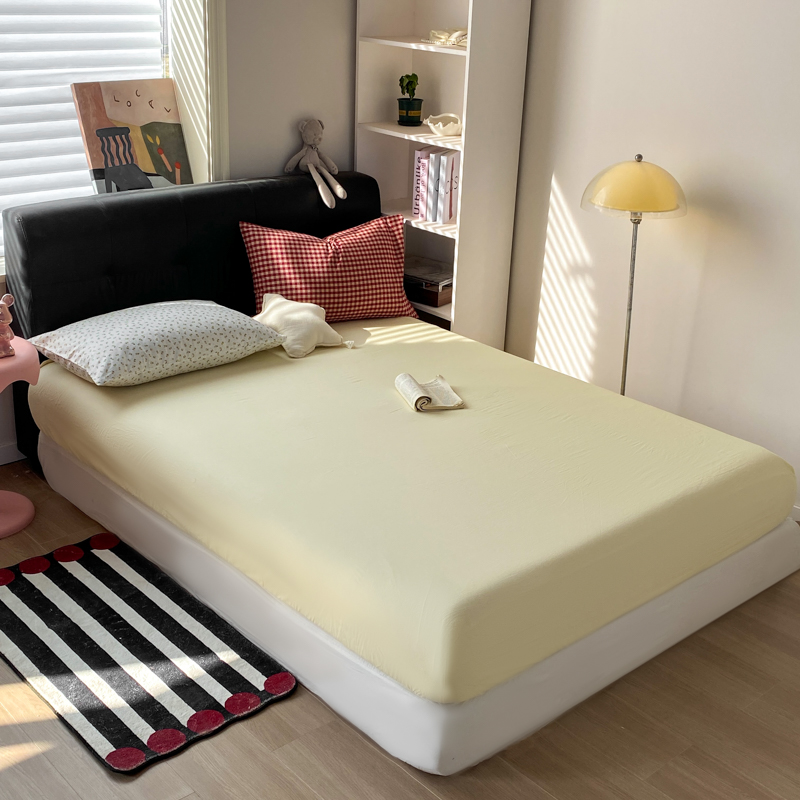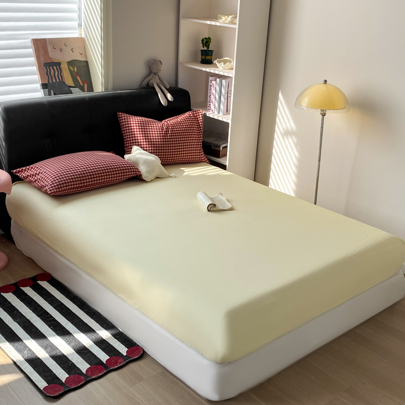 商品名称:(总)对白 2026新款ins风全棉色织水洗棉纯棉简约极简格子系列单床笠-草莓奶昔