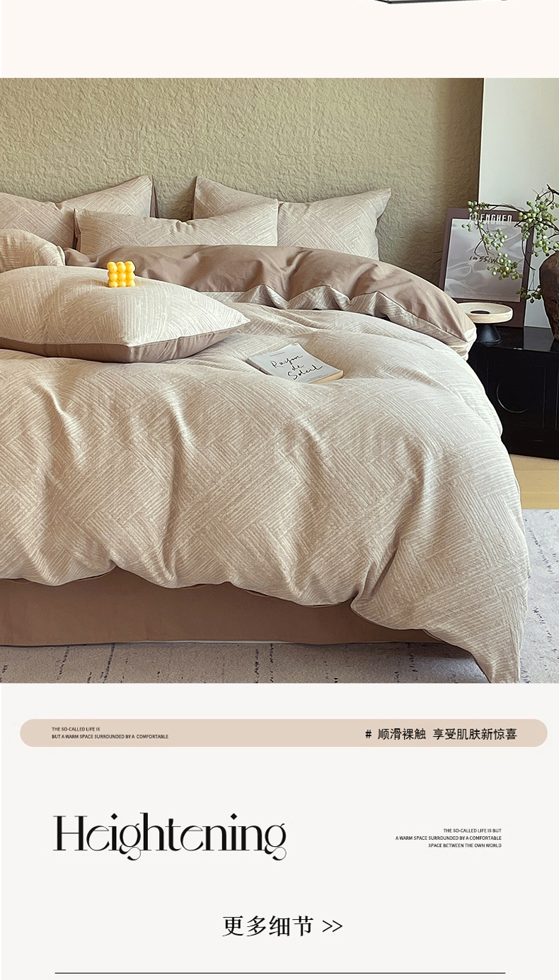 当前位置: 91家纺网 > 商品网购 > 床品套件 > 四件套 > 全棉普通四件套 > 琪格格纺织 2026新款纯棉色织肌理纹提花华夫格纯棉轻奢简约款四件套 简奢-可可棕