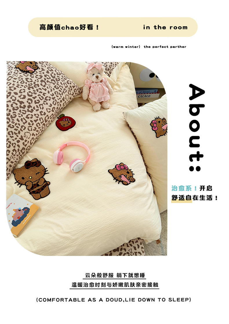 当前位置: 91家纺网 > 商品网购 > 床品套件 > 四件套 > 毛巾绣四件套 > 橙意 2026新款云感双层纱贴布绣四件套-黑皮KT猫 黑皮KT猫-奶油黄