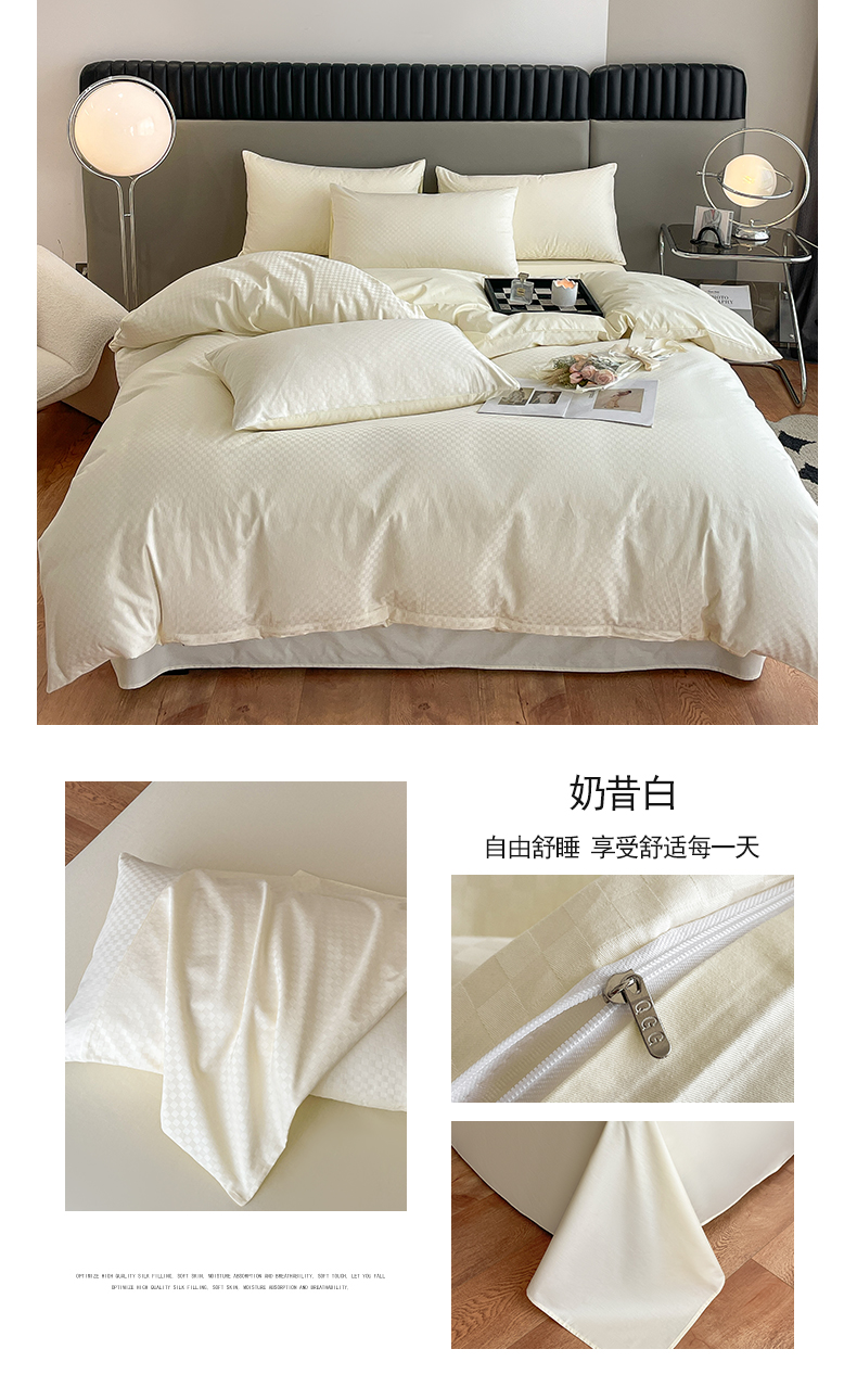 (总)琪格格纺织 2026新款轻奢长绒棉纯棉高级感提花方格酒店名宿居家四件套,60长绒棉-简格本白,60长绒棉-简格奶白亚麻棕,60长绒棉-简格亚麻棕,60长绒棉-纯果绿,60长绒棉-高级灰,60长绒棉-奶昔白,60长绒棉-奶昔白+果绿,60长绒棉-奶昔白+摩卡棕,60长绒棉-杏仁+摩卡棕,原棉大提花-本白,原棉大提花-卡其棕,原棉大提花-摩登灰,原棉大提花-浅蓝,原棉小提花-本白-场景一,原棉小提花-本白-场景二