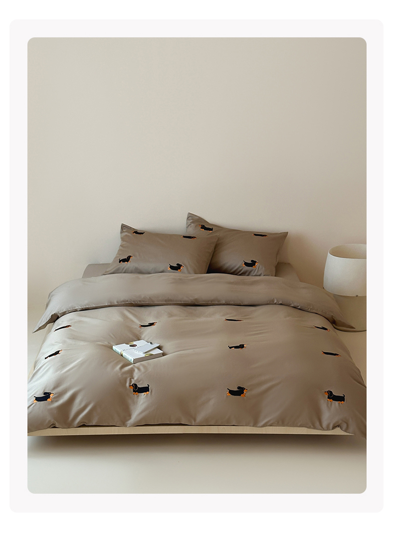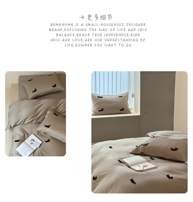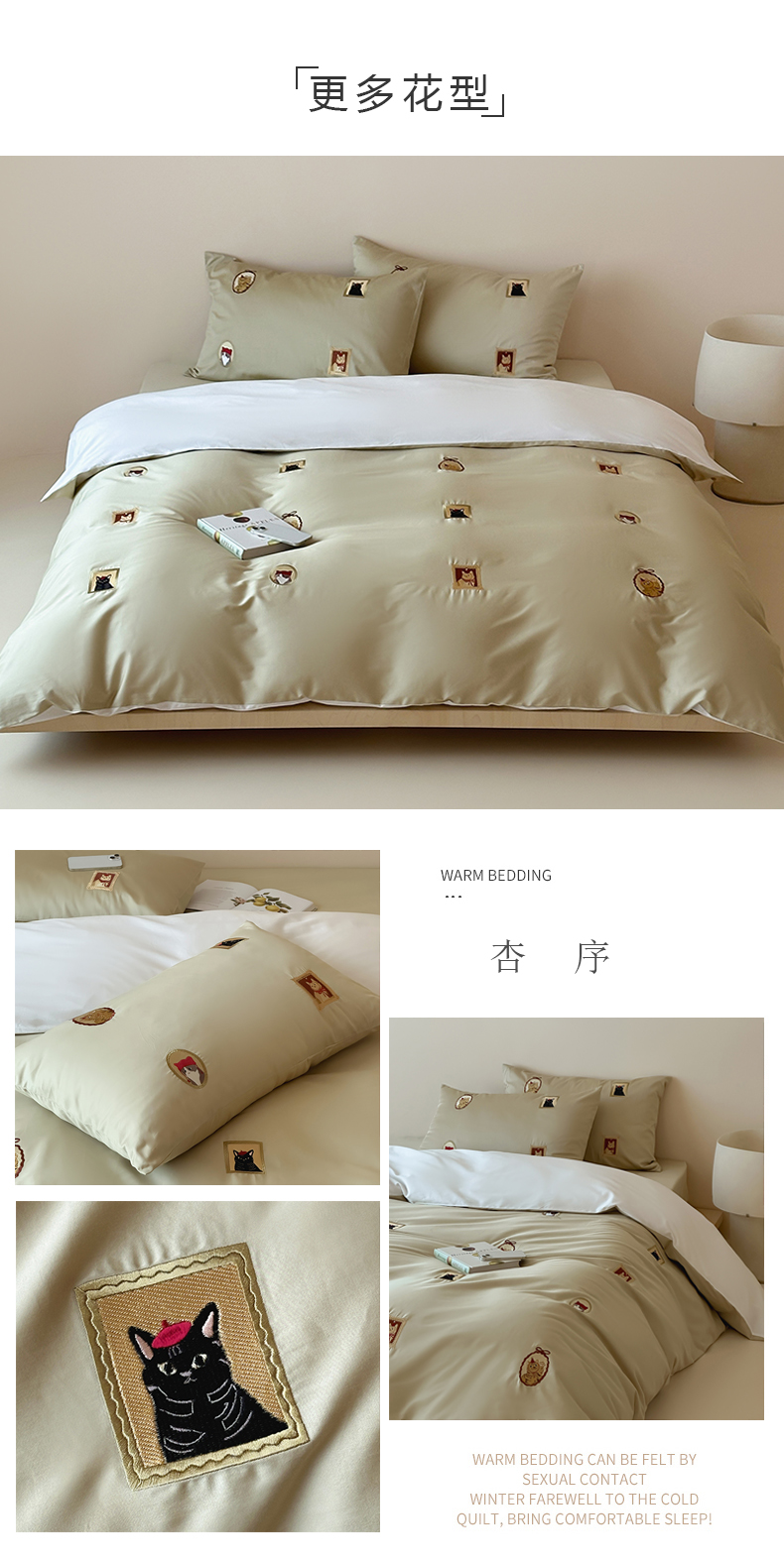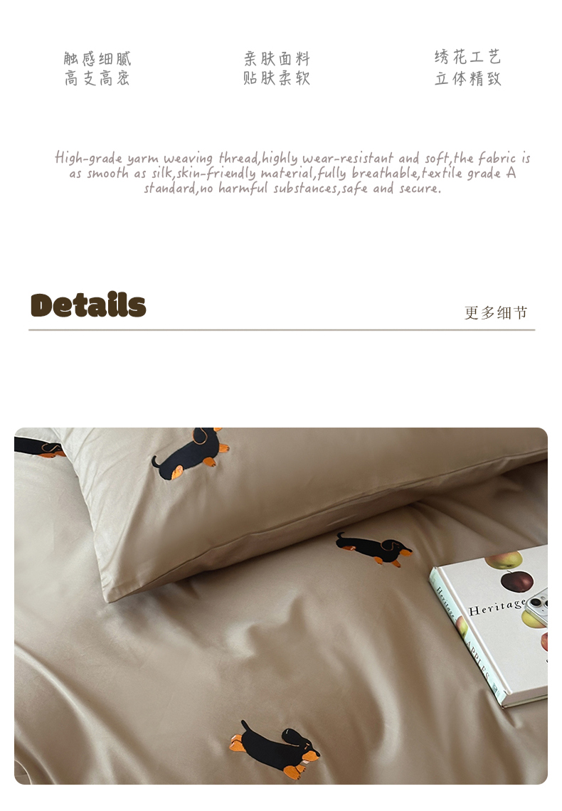 (总)波比可可 2026新款50s长绒棉纯棉全棉居家轻奢刺绣四件套,小比熊,花卉,咖啡猫,快乐狗,快乐喵,礼物,兔子