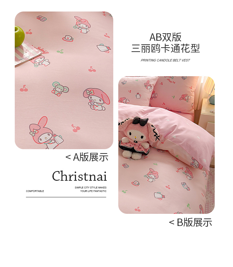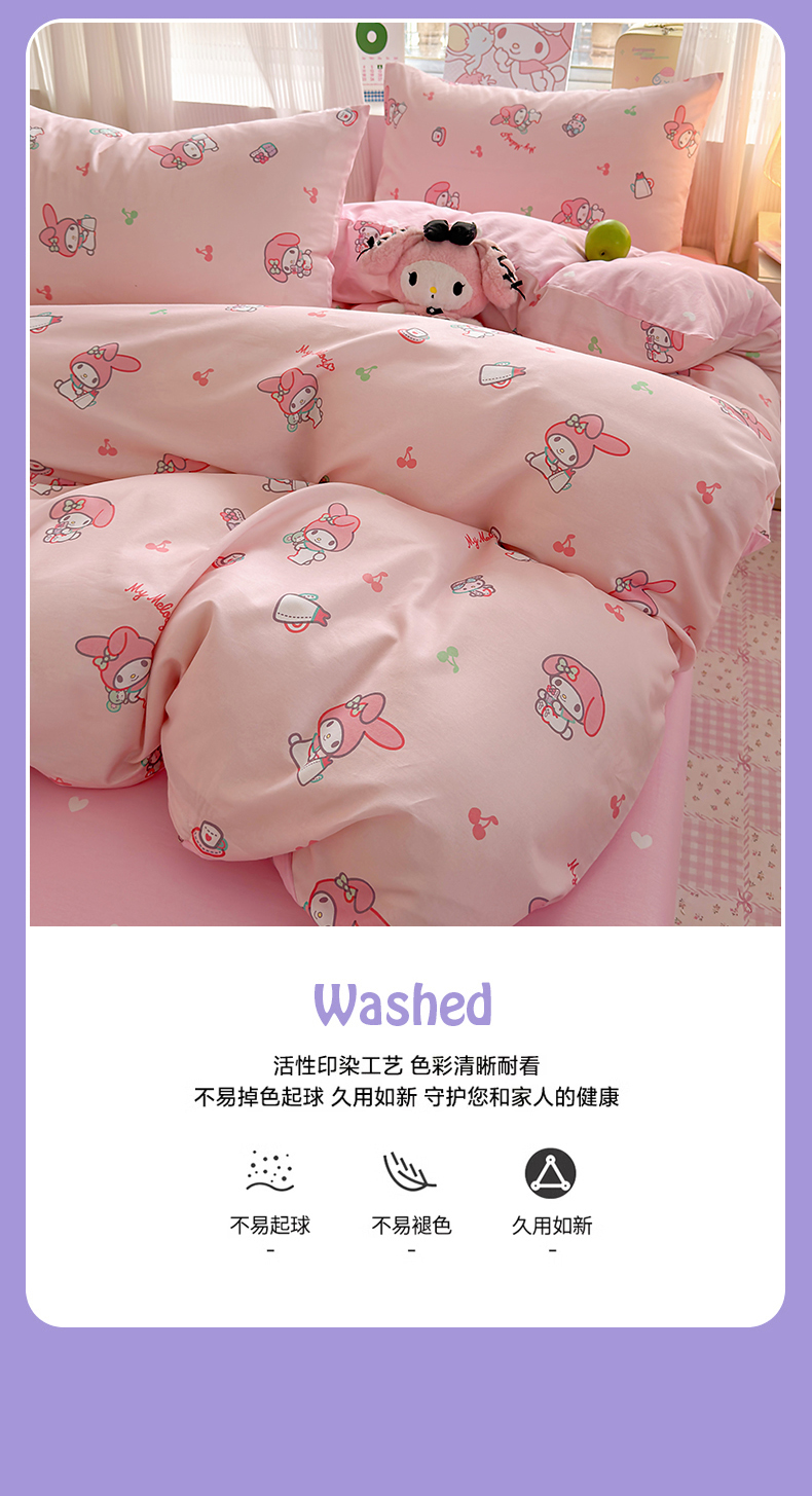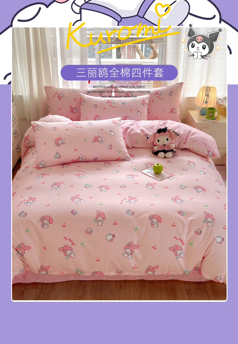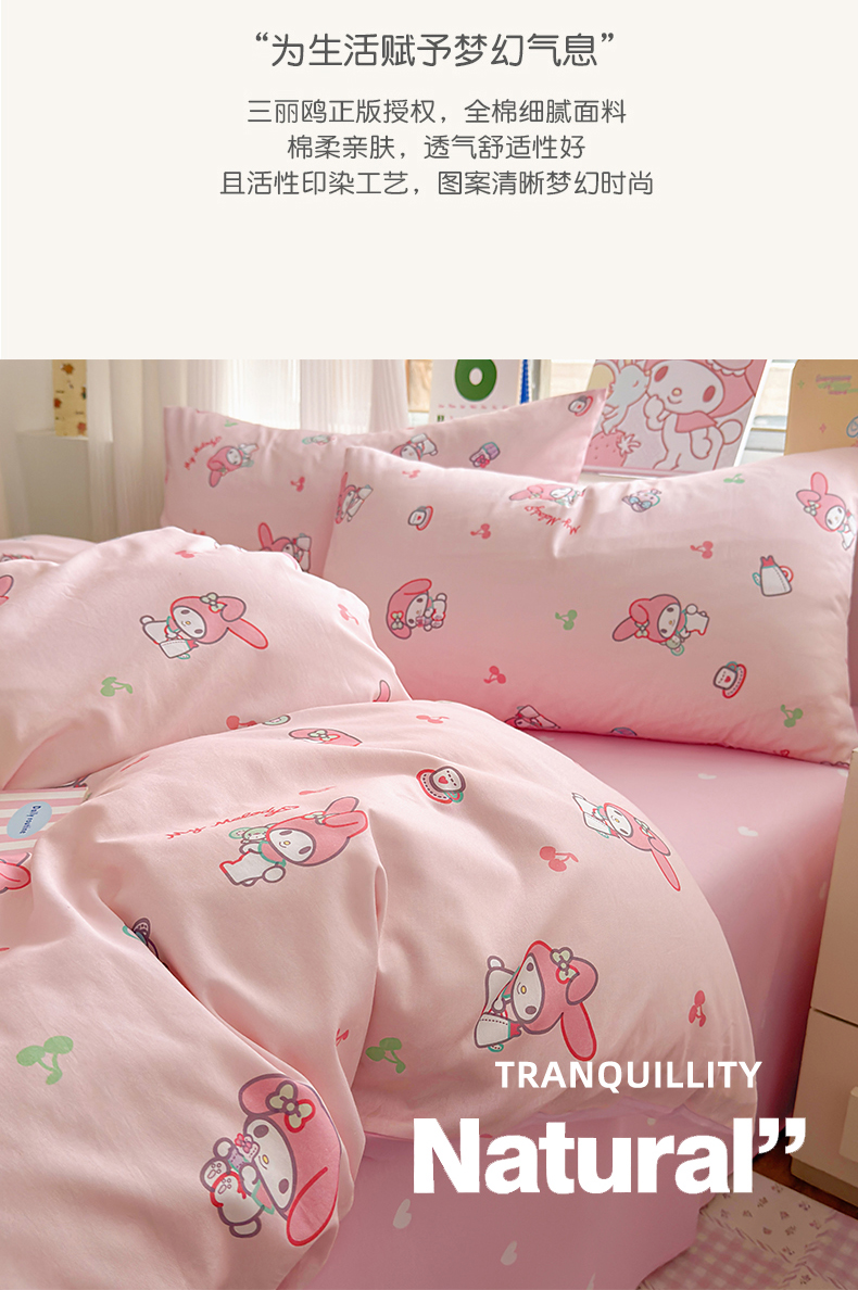 商品名称:曼之夏 2026新款全棉三丽鸥正版授权卡通四件套 元气美乐蒂