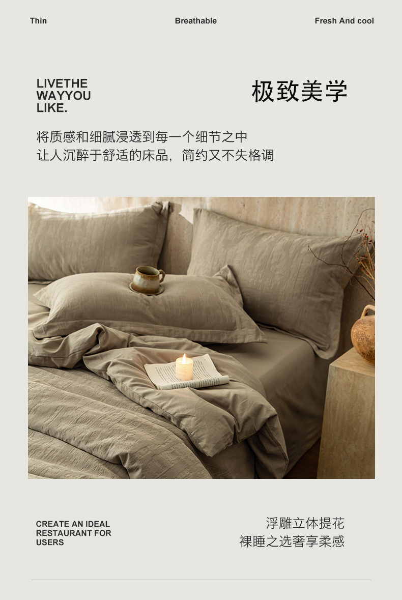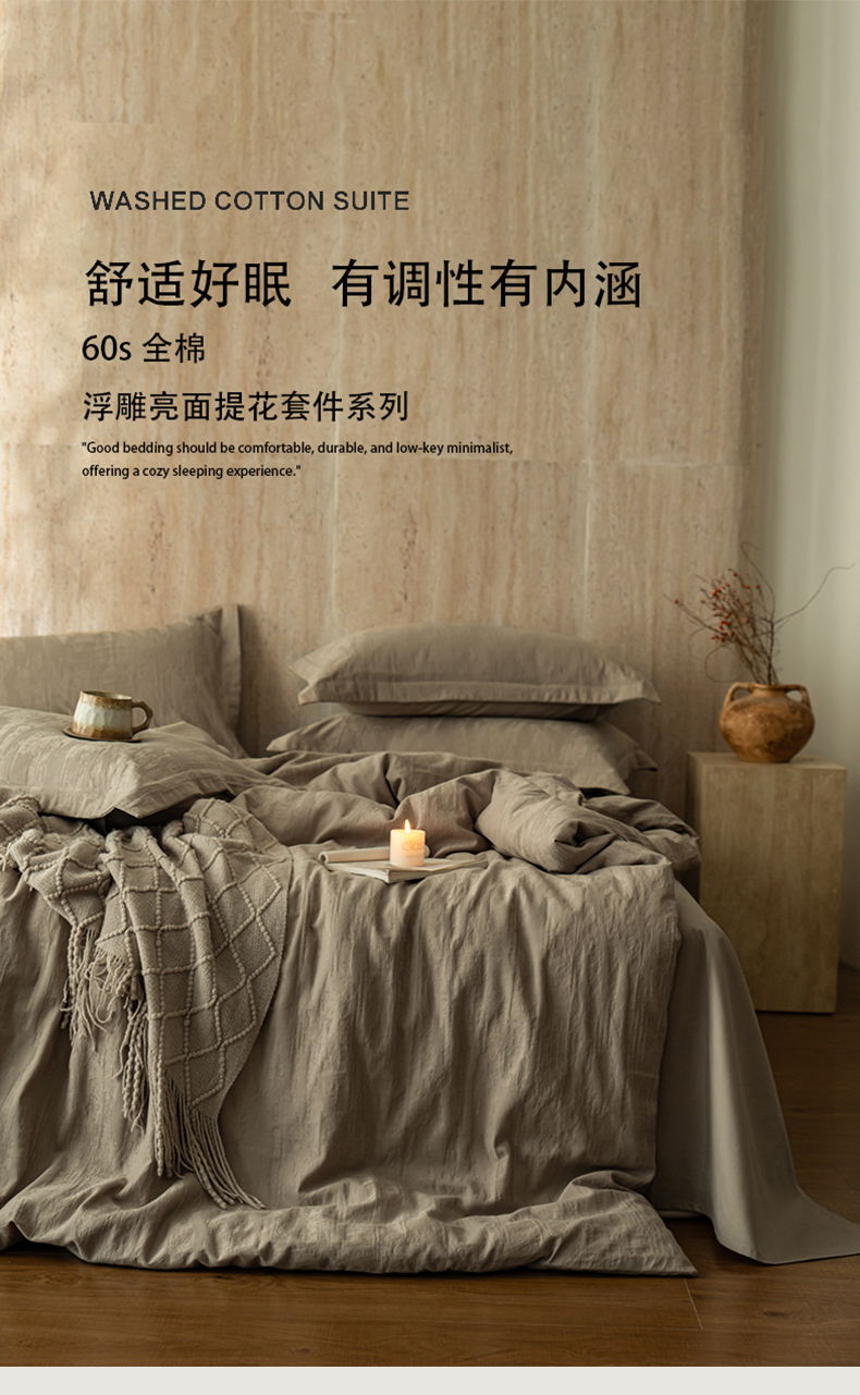当前位置: 91家纺网 > 商品网购 > 床品套件 > 四件套 > 全棉普通四件套 > 爱思佳 2026新款A类全棉60s浮雕亮面提花系列四件套 里约灰