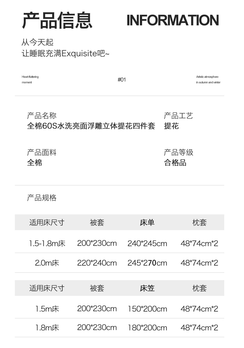 1.5m床笠款四件套 | ¥155.00 |