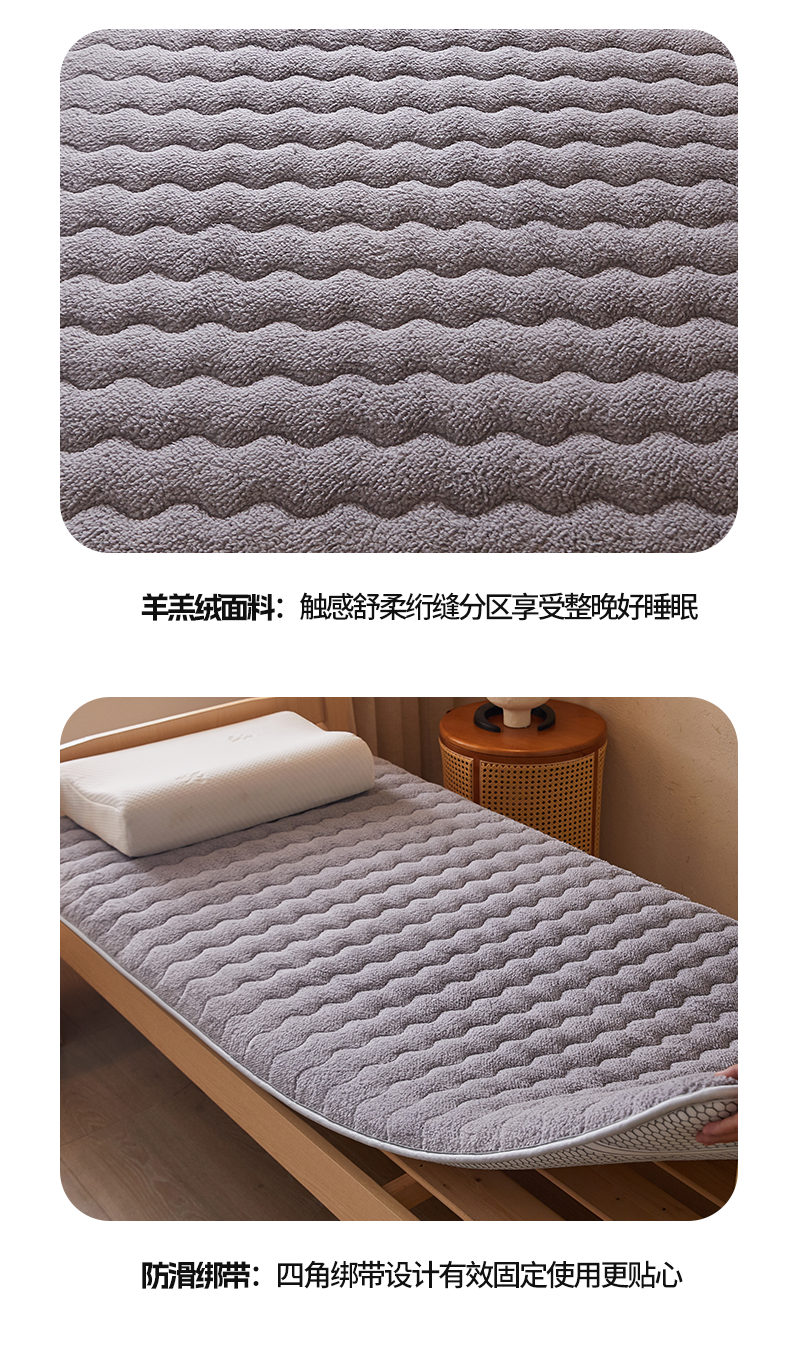 当前位置: 91家纺网 > 商品网购 > 床垫/床褥 > 羊羔绒床垫 > 月茶家纺 2026新款高克重羊羔绒床垫垫子 灰色