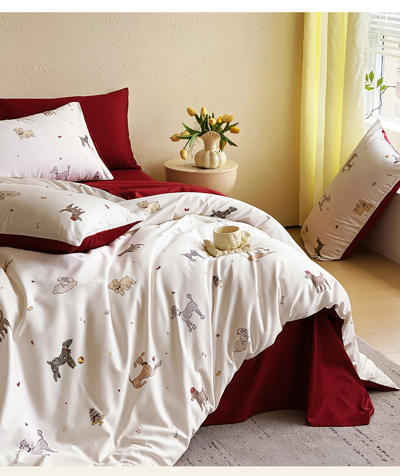 (总)鼎飞家纺 2026新款100S长绒棉数码印花四件套-幸运小狗
