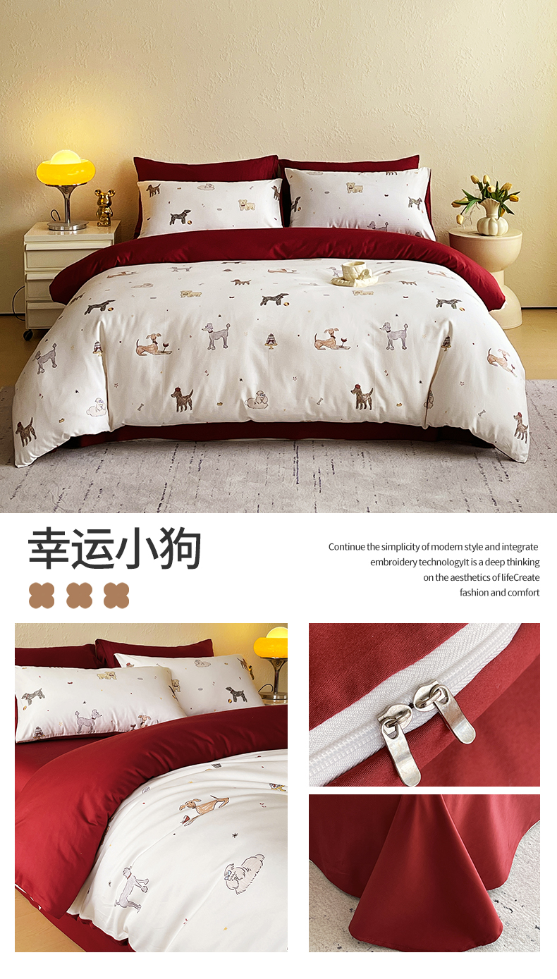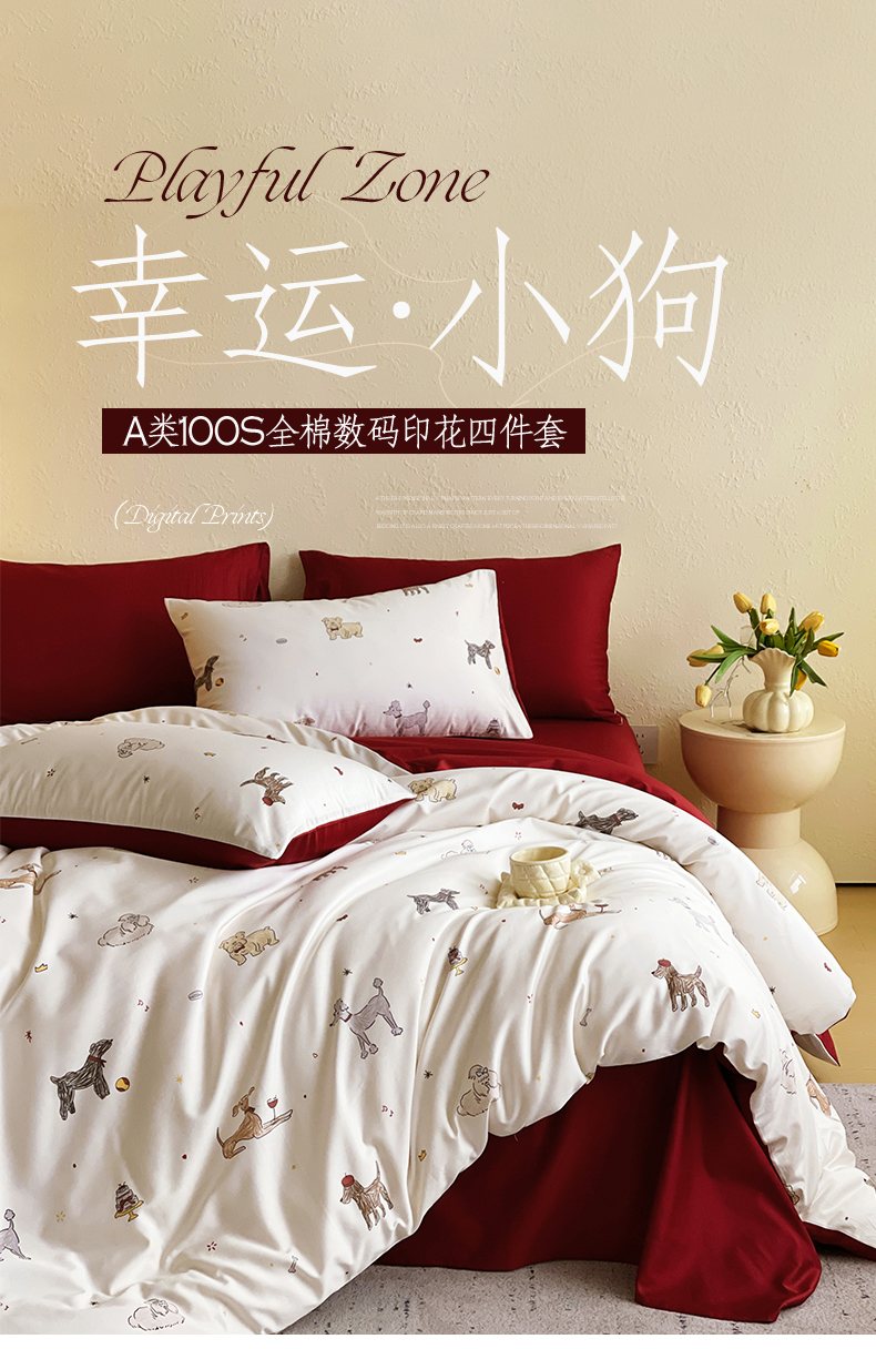 商品名称:(总)鼎飞家纺 2026新款100S长绒棉数码印花四件套-幸运小狗