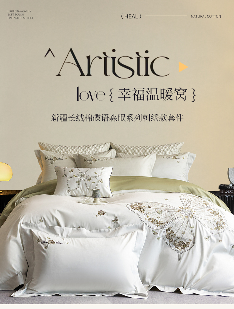 优悦生活馆 2026新款全棉新疆长绒棉刺绣四件套-碟语森眠 碟语森眠-白