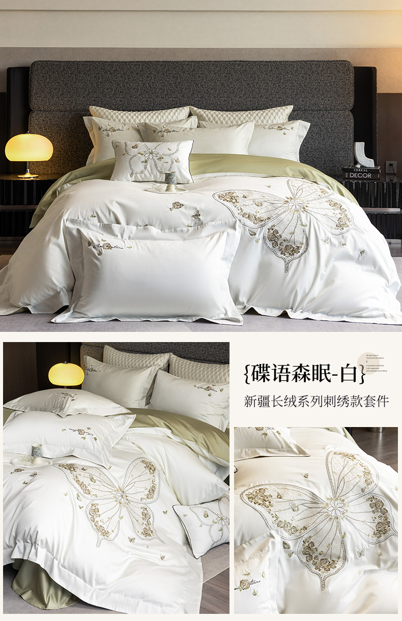 商品名称:优悦生活馆 2026新款全棉新疆长绒棉刺绣四件套-碟语森眠 碟语森眠-白