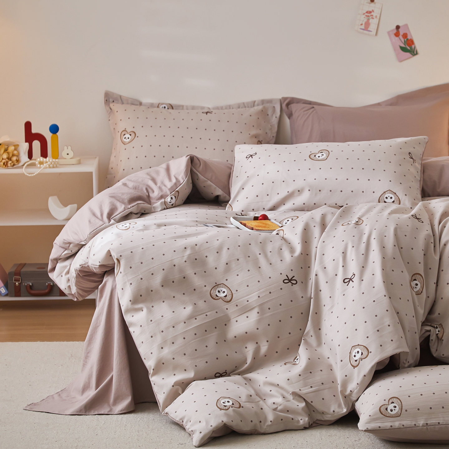 (总)梦纤绒 2026新款香云锦仿棉高克重四件套,爱心熊,粉格蝴蝶结,可爱多多猫,南瓜派,树叶萌象,甜梦撞色心,小马格韵,布拉格灰,竹影清风,紫韵花