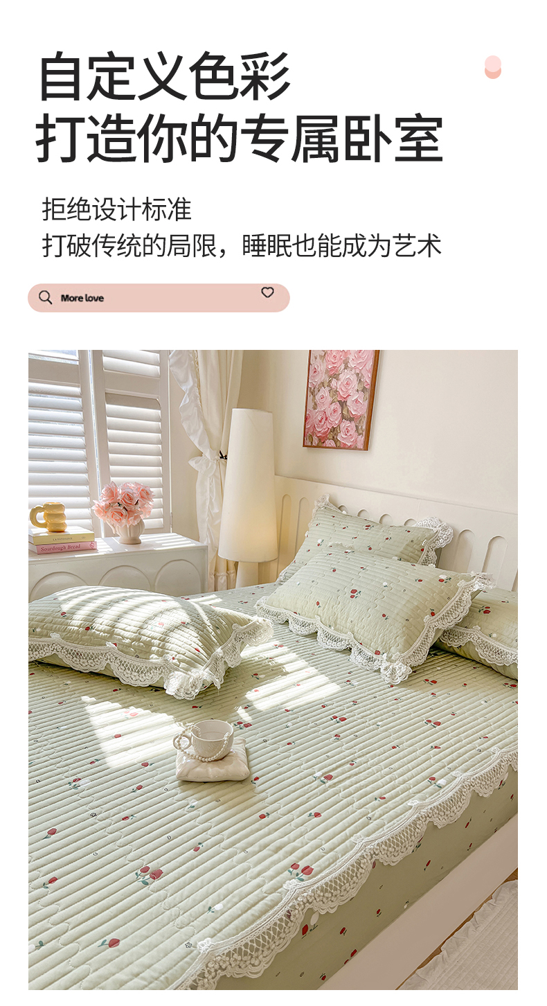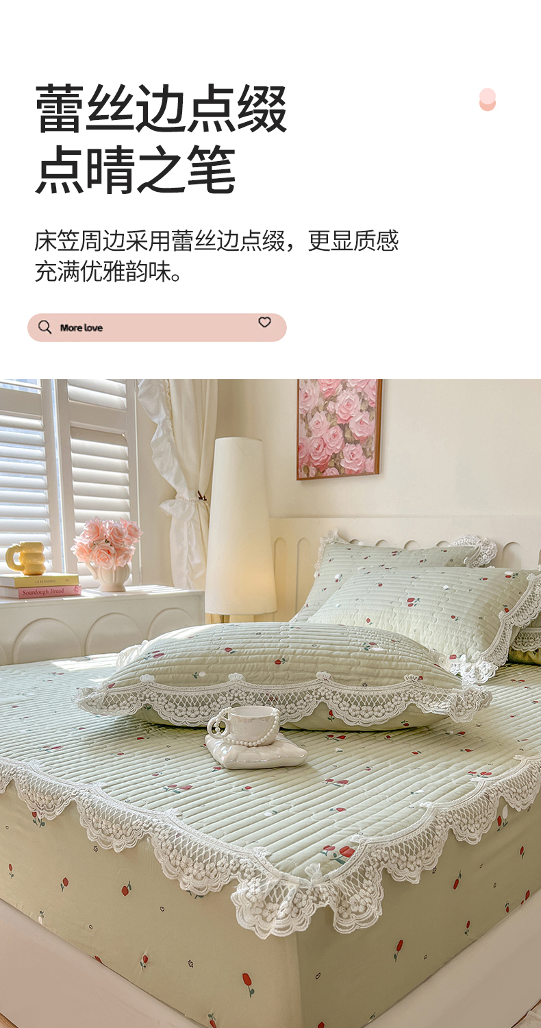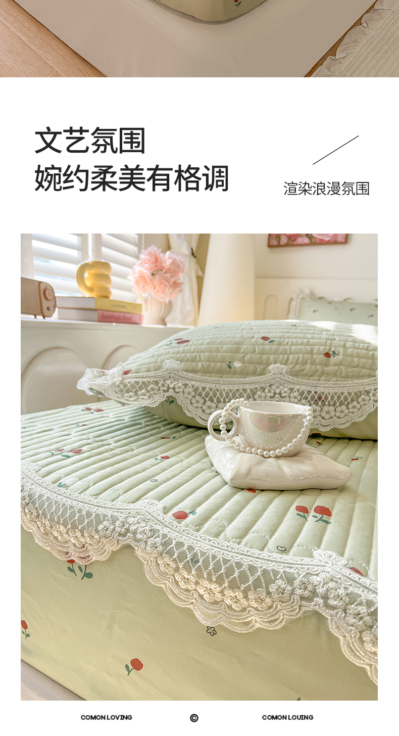 (总)网红馆(ck家纺) 2026新款全棉蕾丝花边床裙款床笠晨暮花间系列,绯红,粉色,麦绿,米色,浅紫,雾蓝