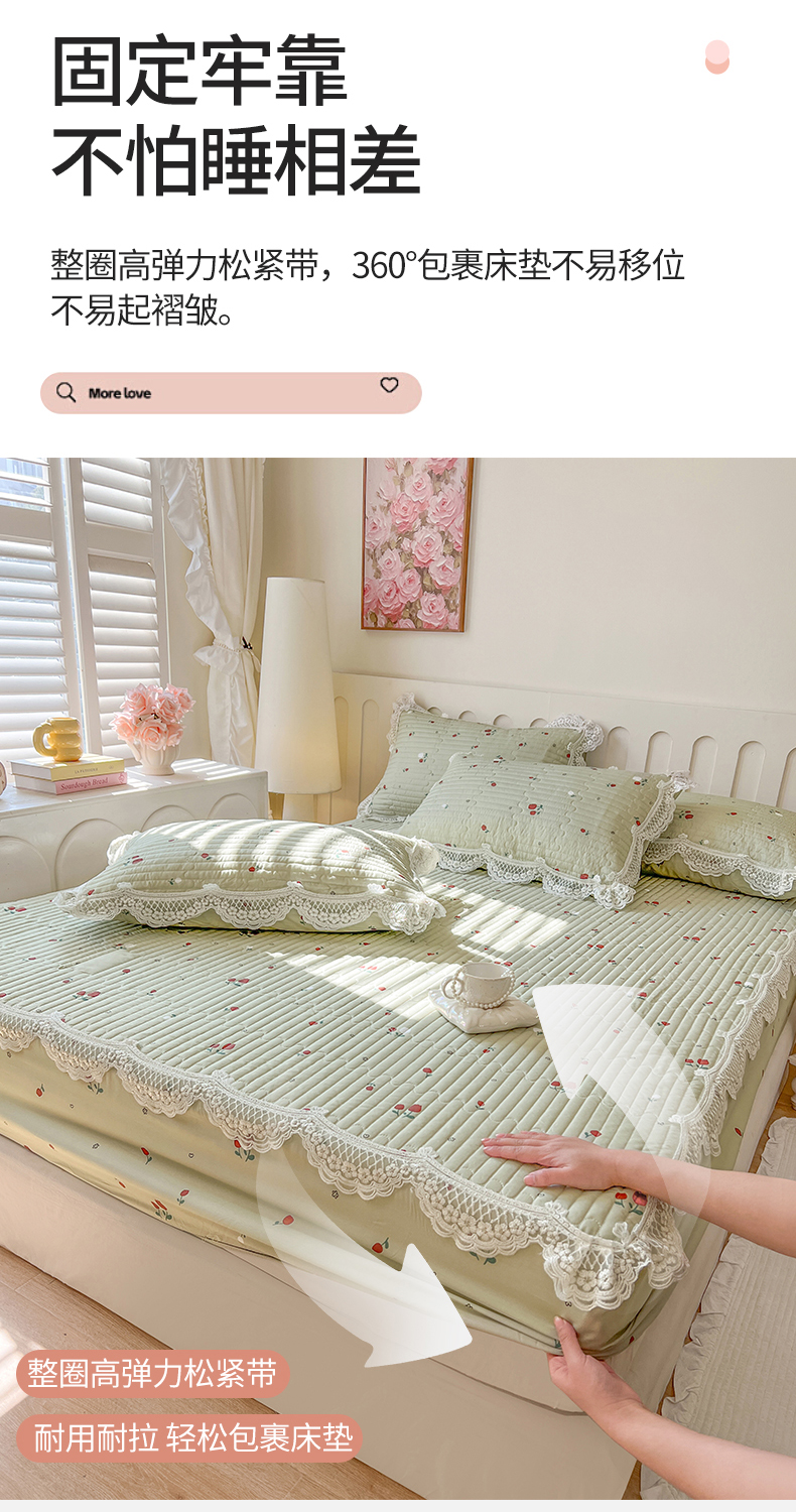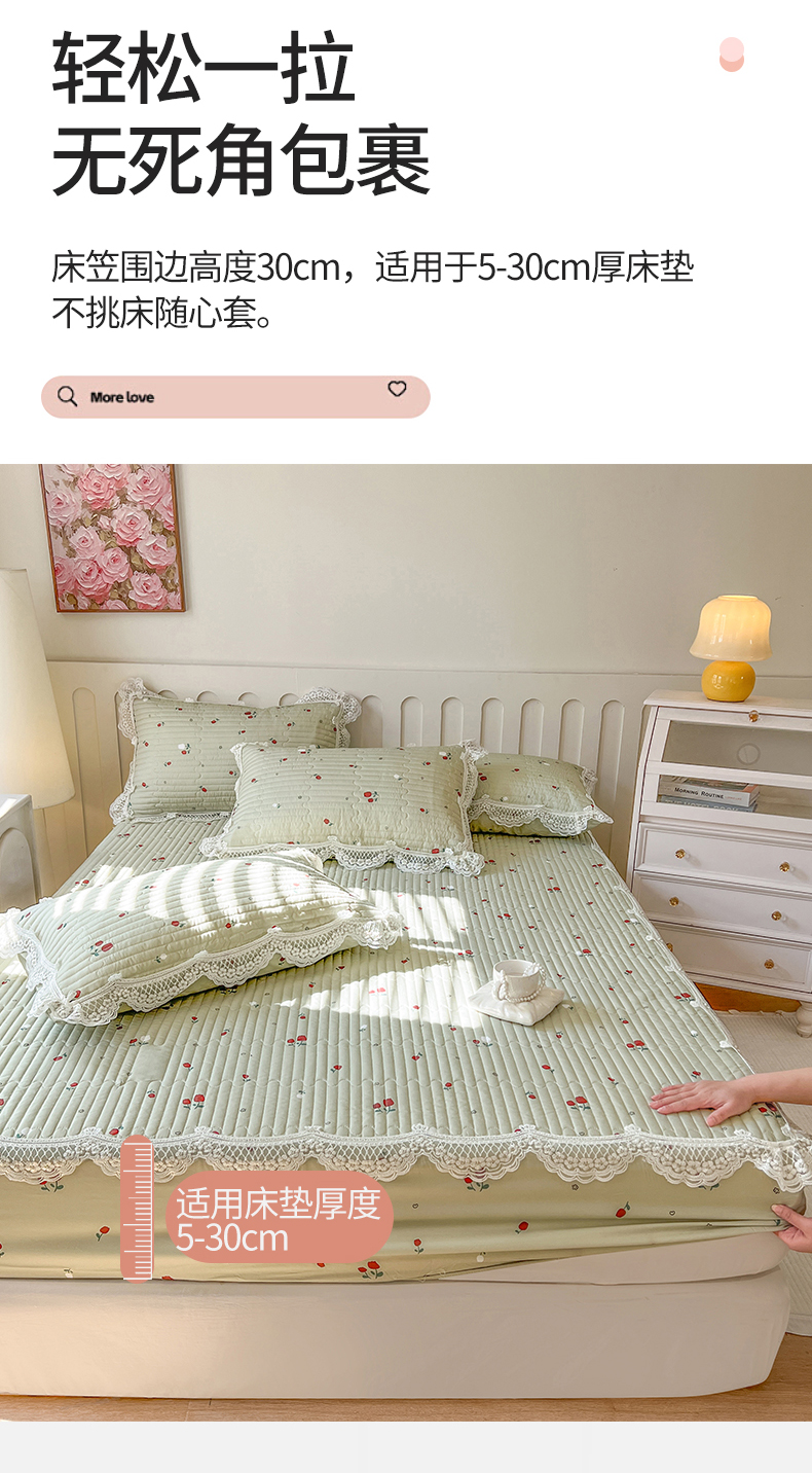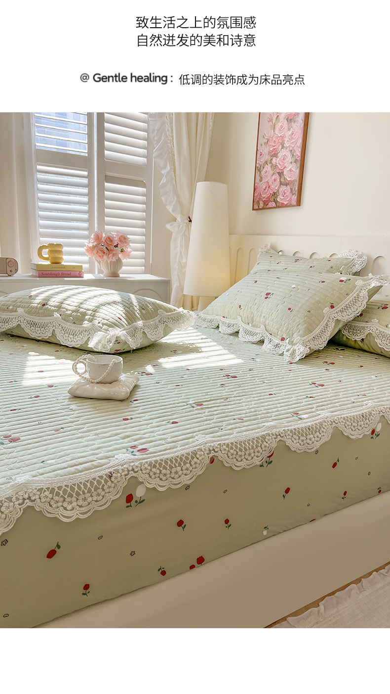 (总)网红馆(ck家纺) 2026新款全棉蕾丝花边床裙款床笠晨暮花间系列,绯红,粉色,麦绿,米色,浅紫,雾蓝
