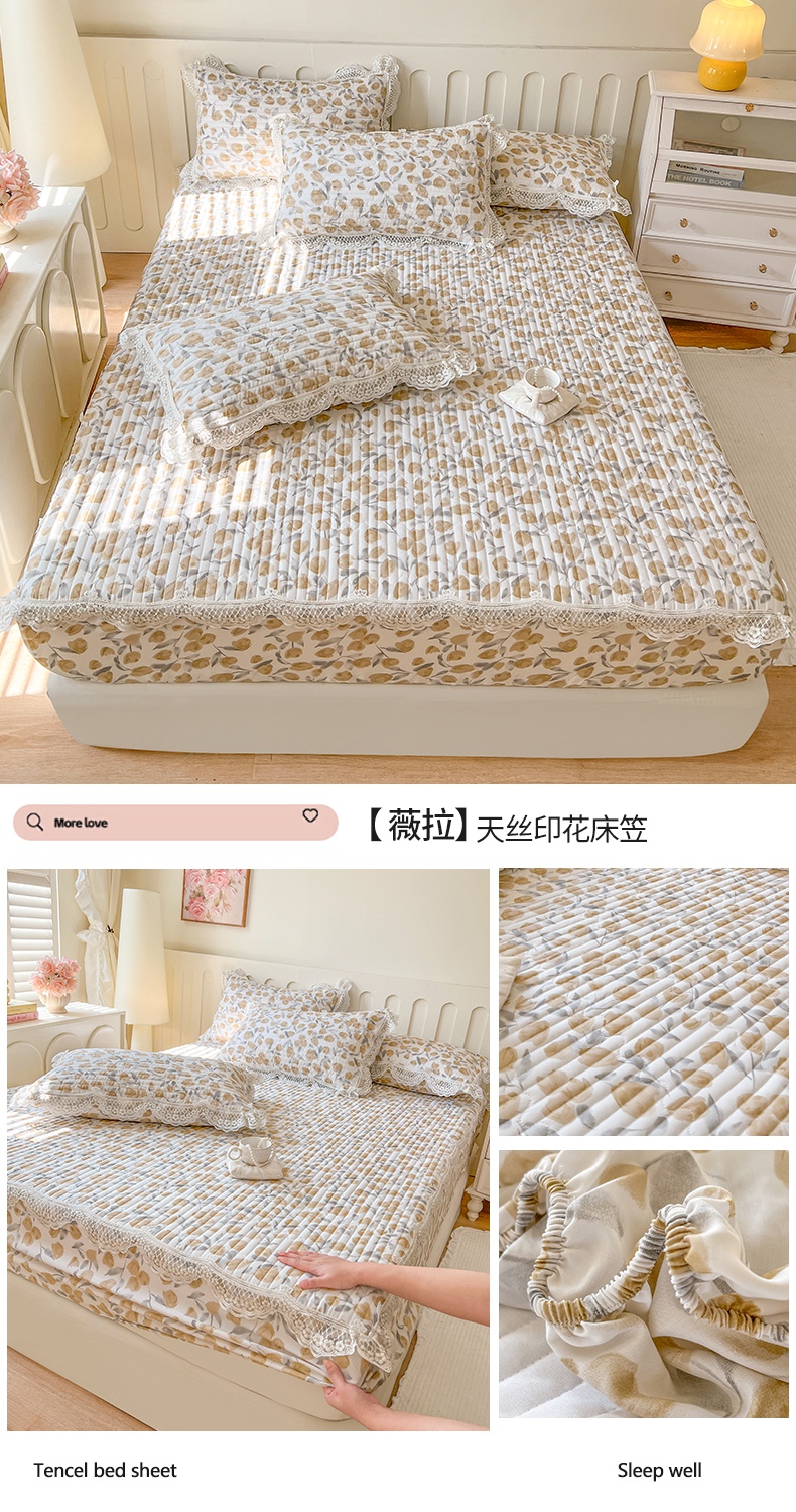 (总)网红馆(ck家纺) 2026新款全棉蕾丝花边床裙款床笠晨暮花间系列,绯红,粉色,麦绿,米色,浅紫,雾蓝