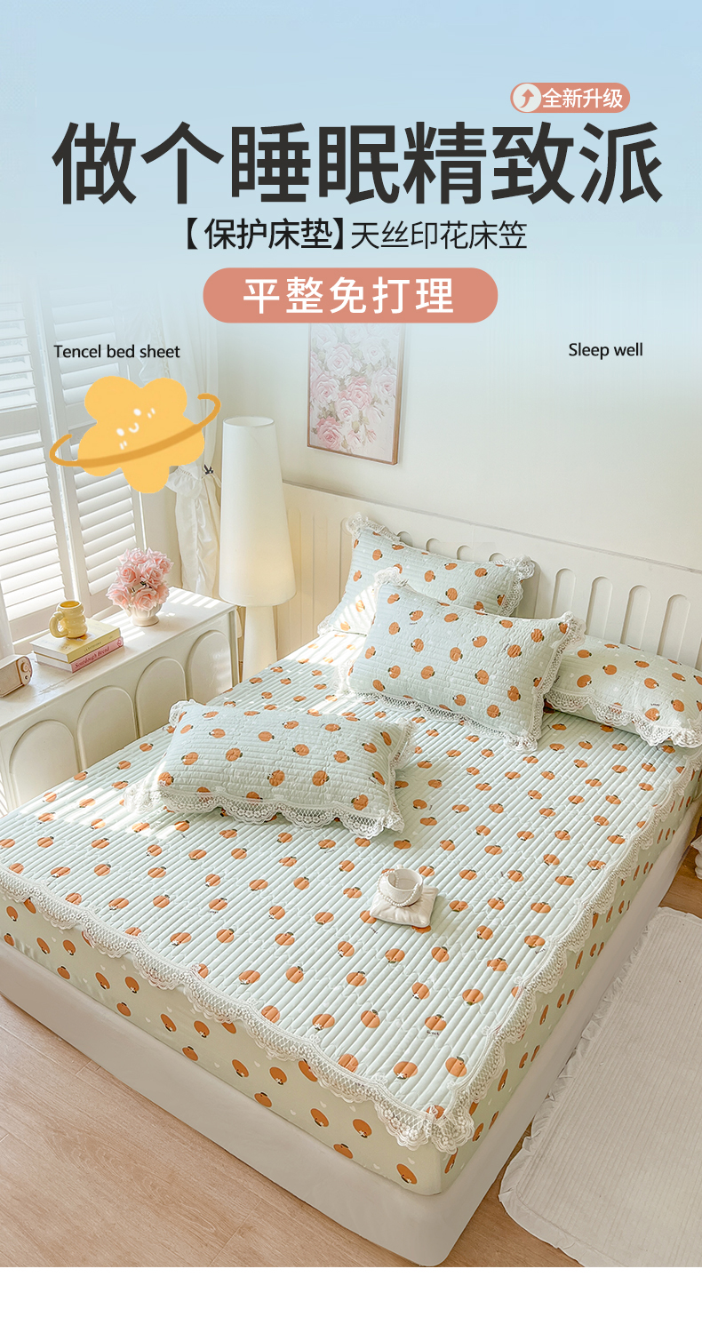 商品名称:网红馆(ck家纺) 2026新款莱赛尔天丝印花床笠 甜橙
