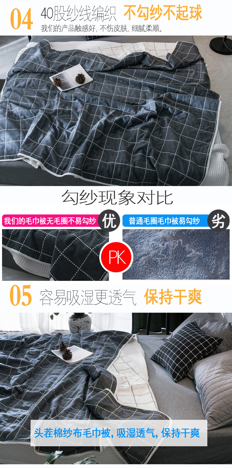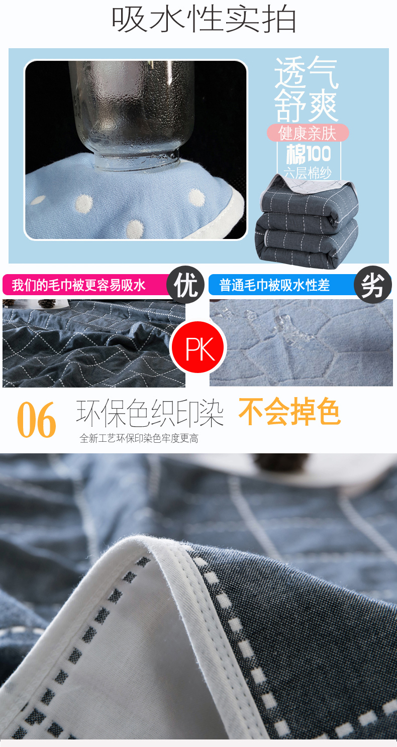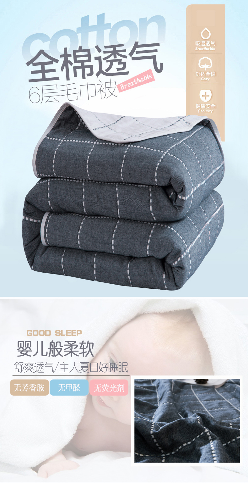 朴尔家纺-毛巾被 2026春夏新款全尺寸经典六层纱布全棉纯棉毛巾被系列夏被夏凉被空调被 时尚虚线-藏青