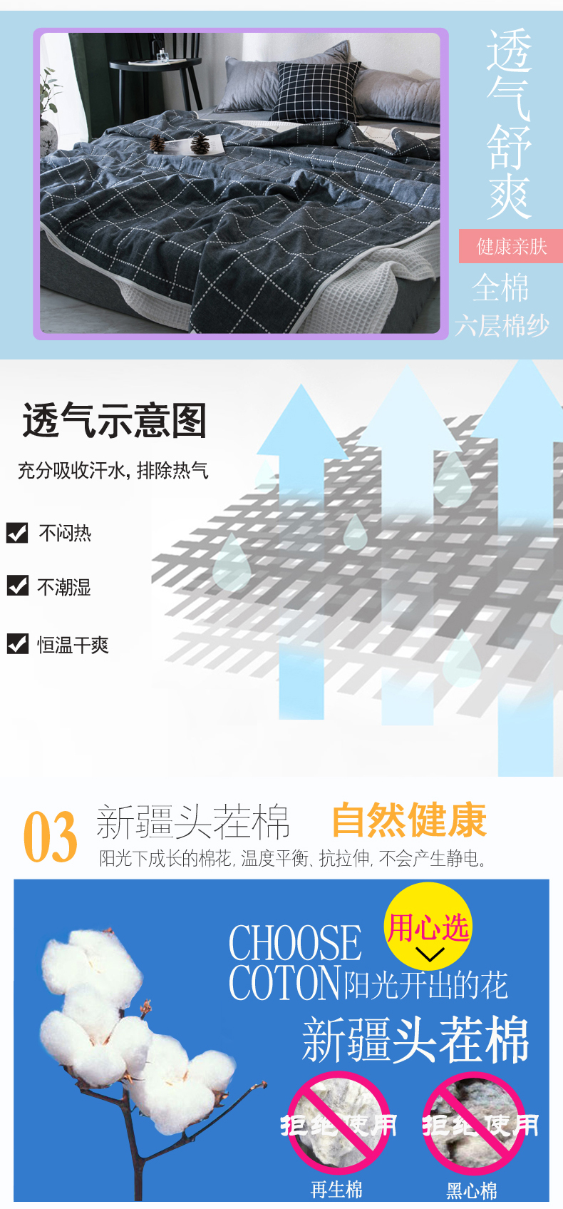 被子 > 夏被 > 朴尔家纺-毛巾被 2026春夏新款全尺寸经典六层纱布全棉纯棉毛巾被系列夏被夏凉被空调被 时尚虚线-藏青