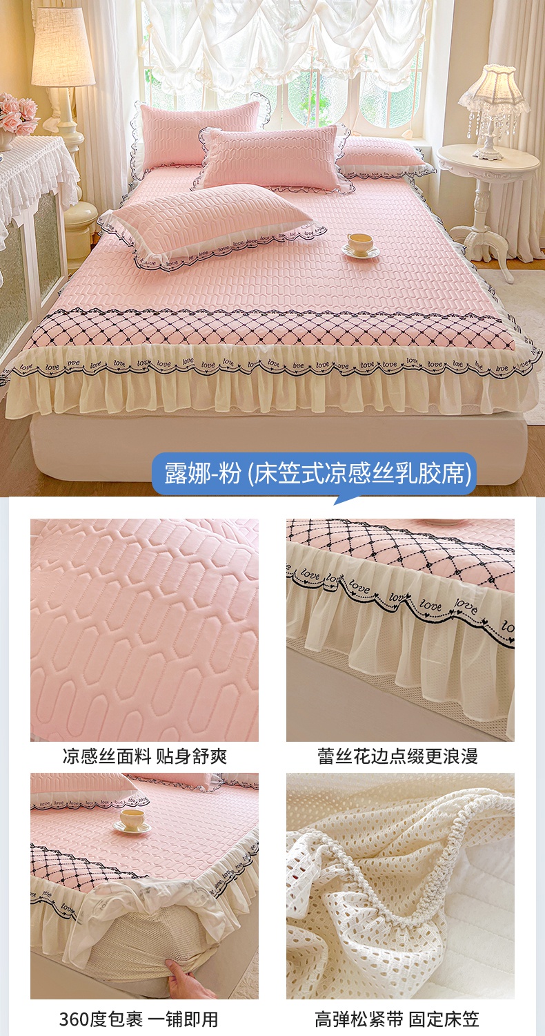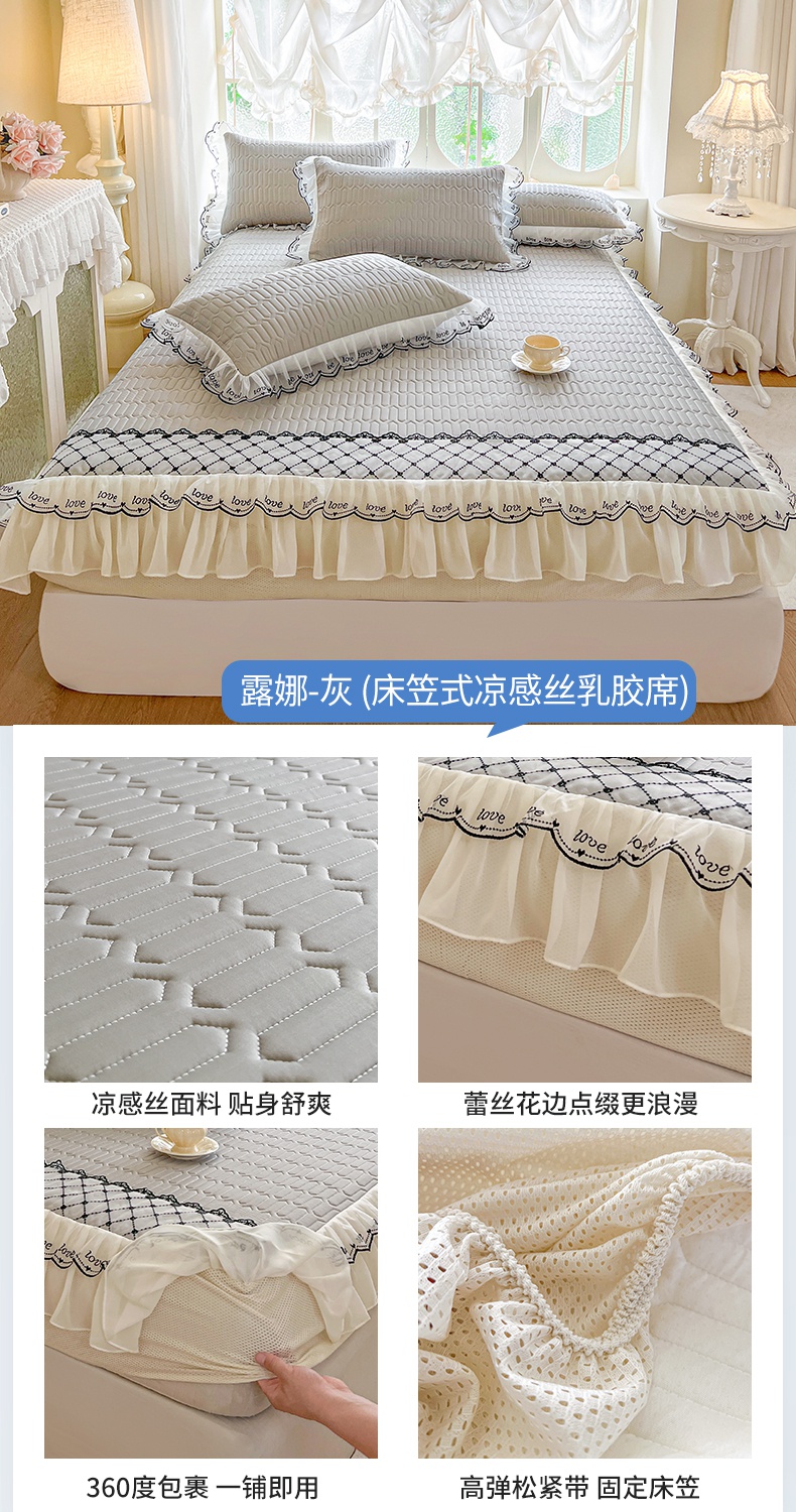 网红馆(ck家纺) 2026新款凉感丝床笠式床裙乳胶凉席三件套-露娜 露娜-灰
