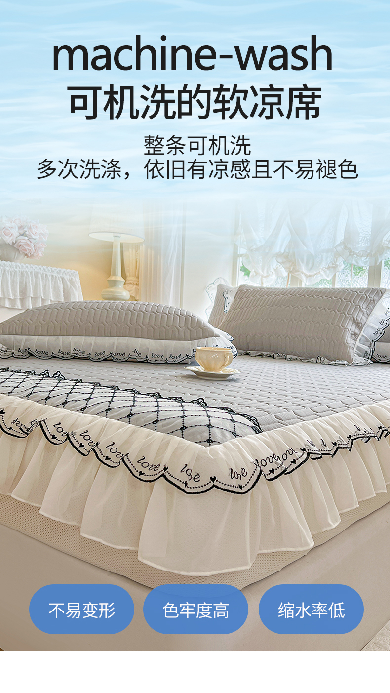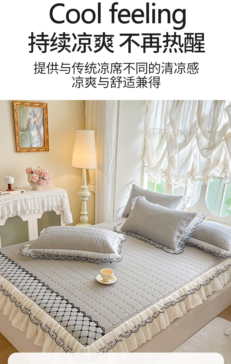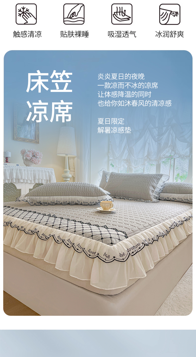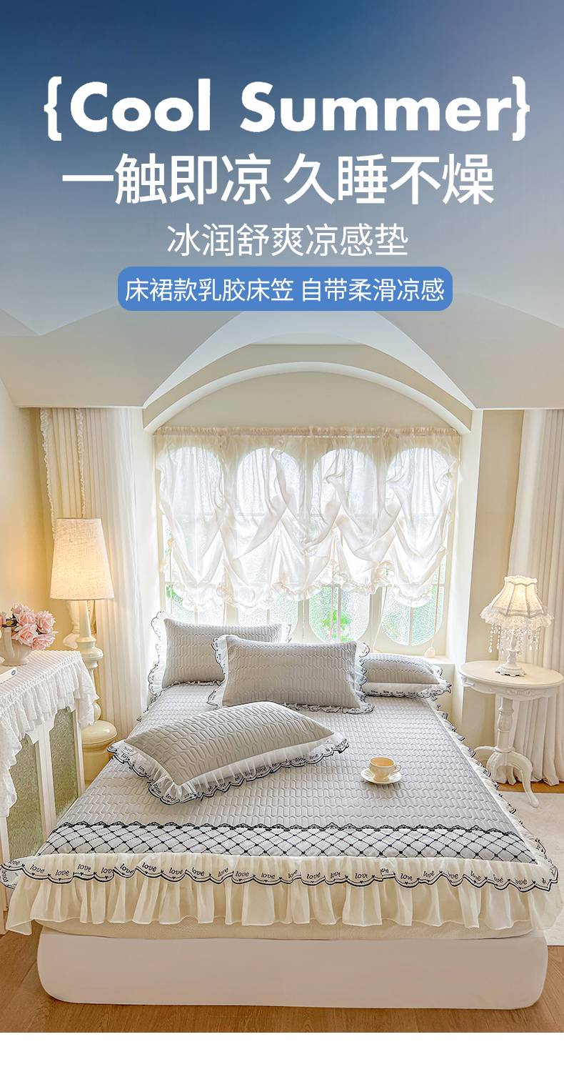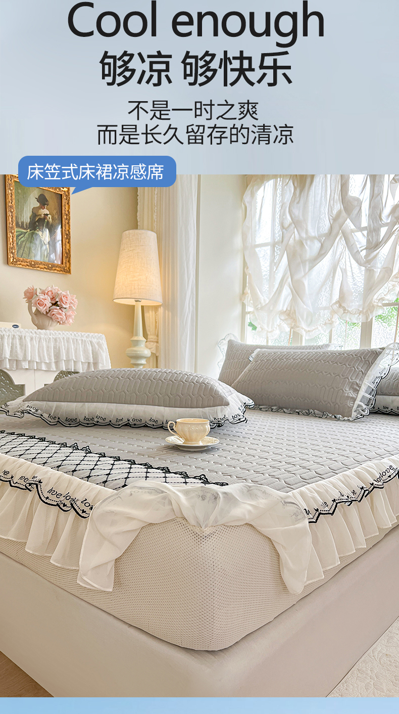商品名称:网红馆(ck家纺) 2026新款凉感丝床笠式床裙乳胶凉席三件套-露娜 露娜-灰