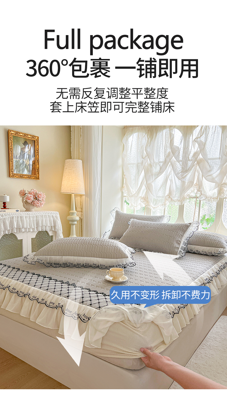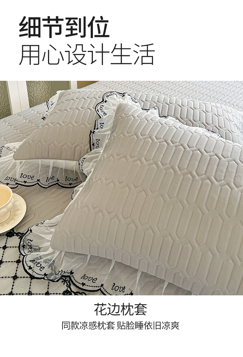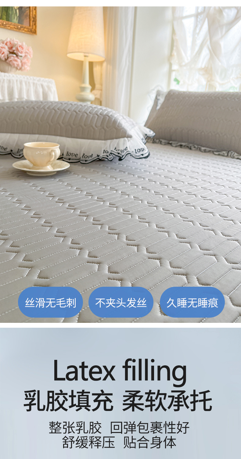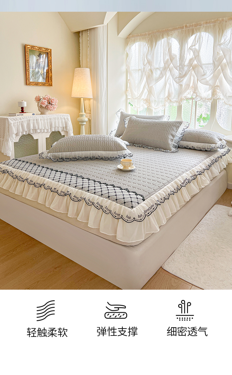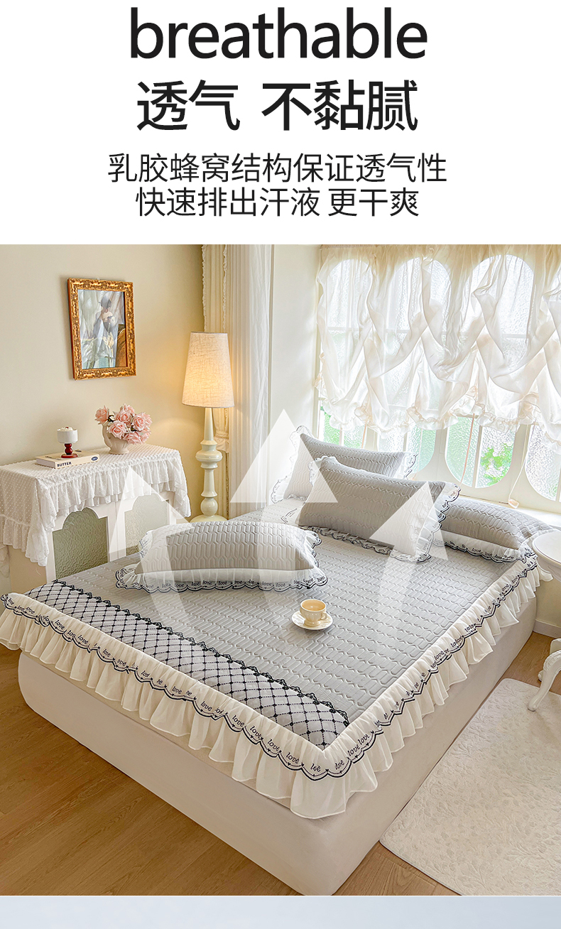 商品名称:网红馆(ck家纺) 2026新款凉感丝床笠式床裙乳胶凉席三件套-露娜 露娜-灰