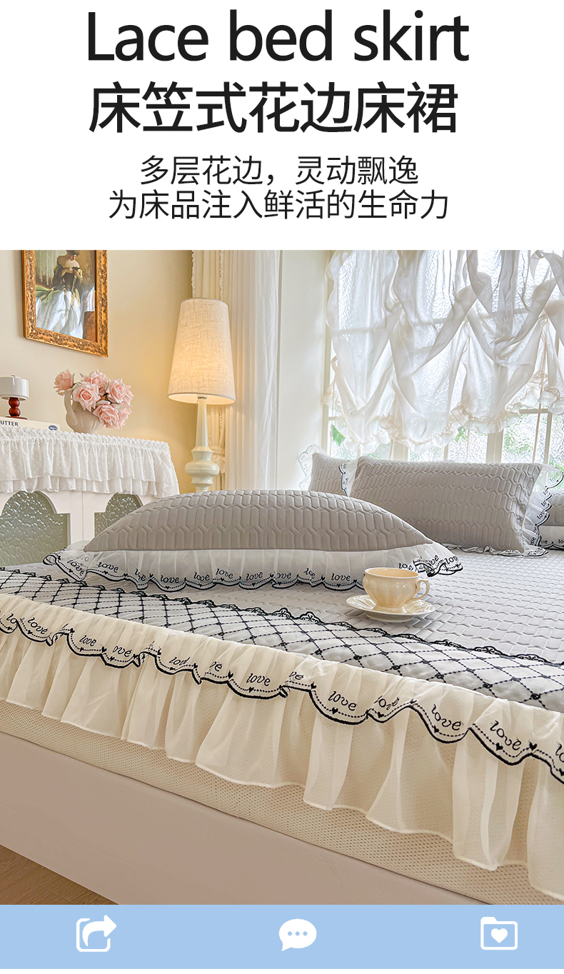 (总)网红馆(ck家纺) 2026新款全棉蕾丝花边床裙款床笠晨暮花间系列,绯红,粉色,麦绿,米色,浅紫,雾蓝