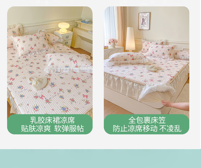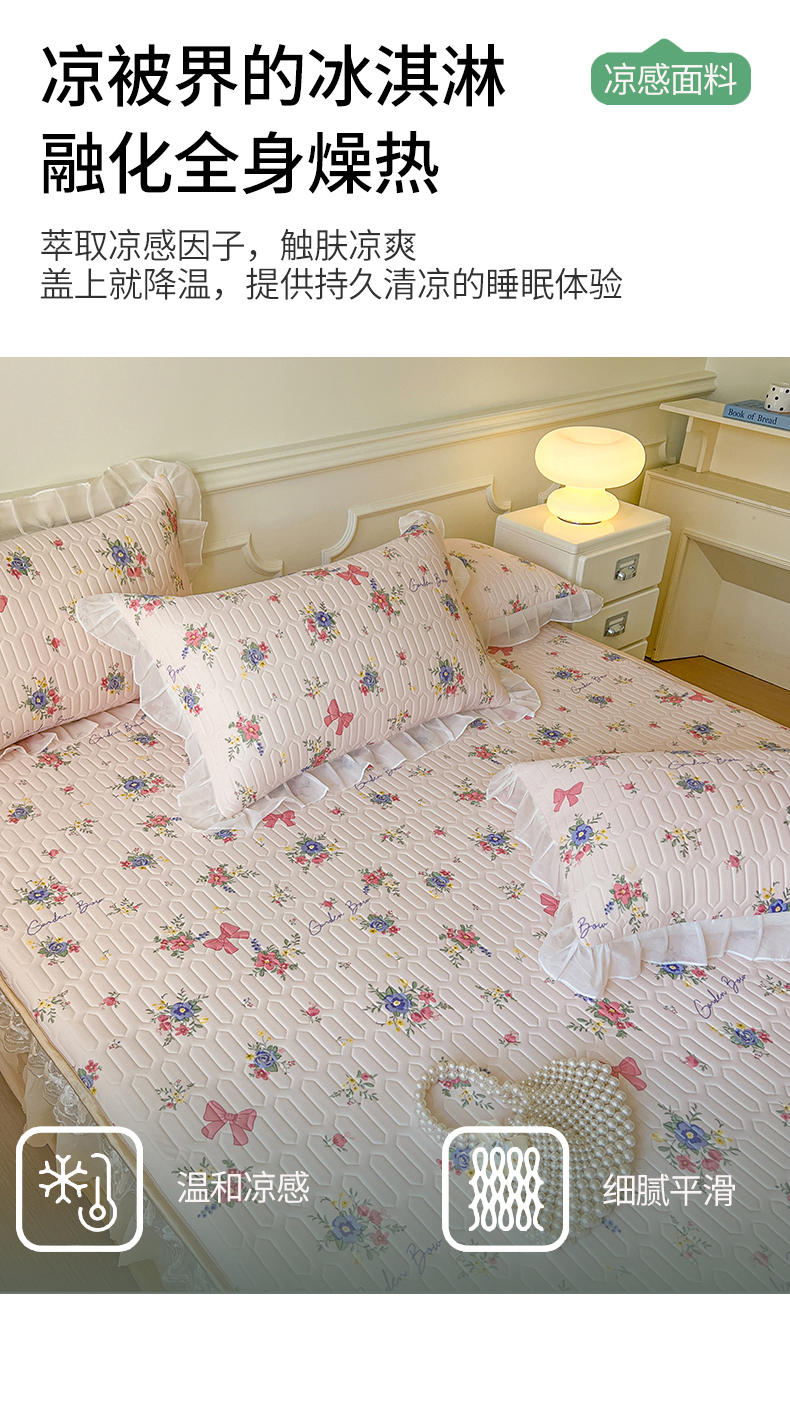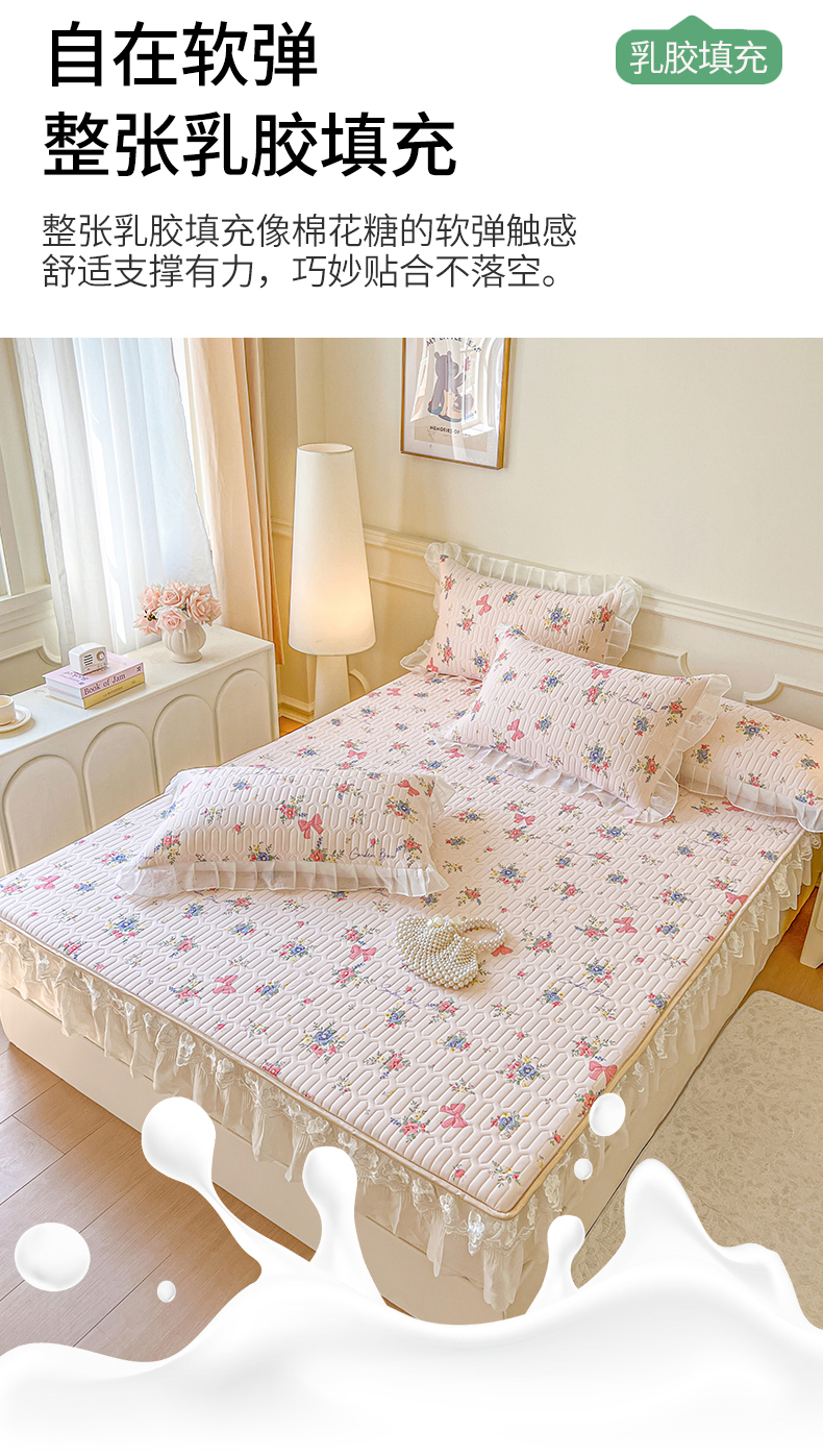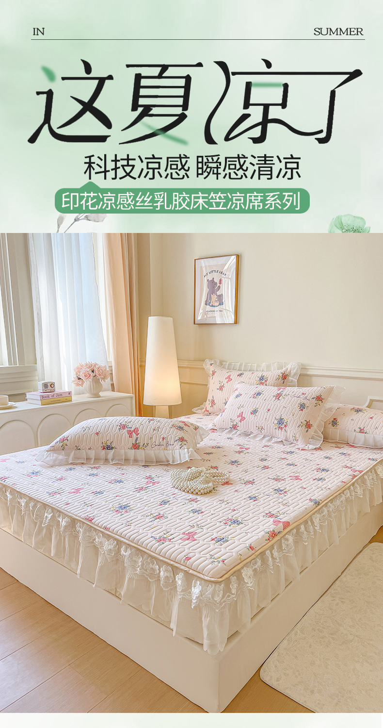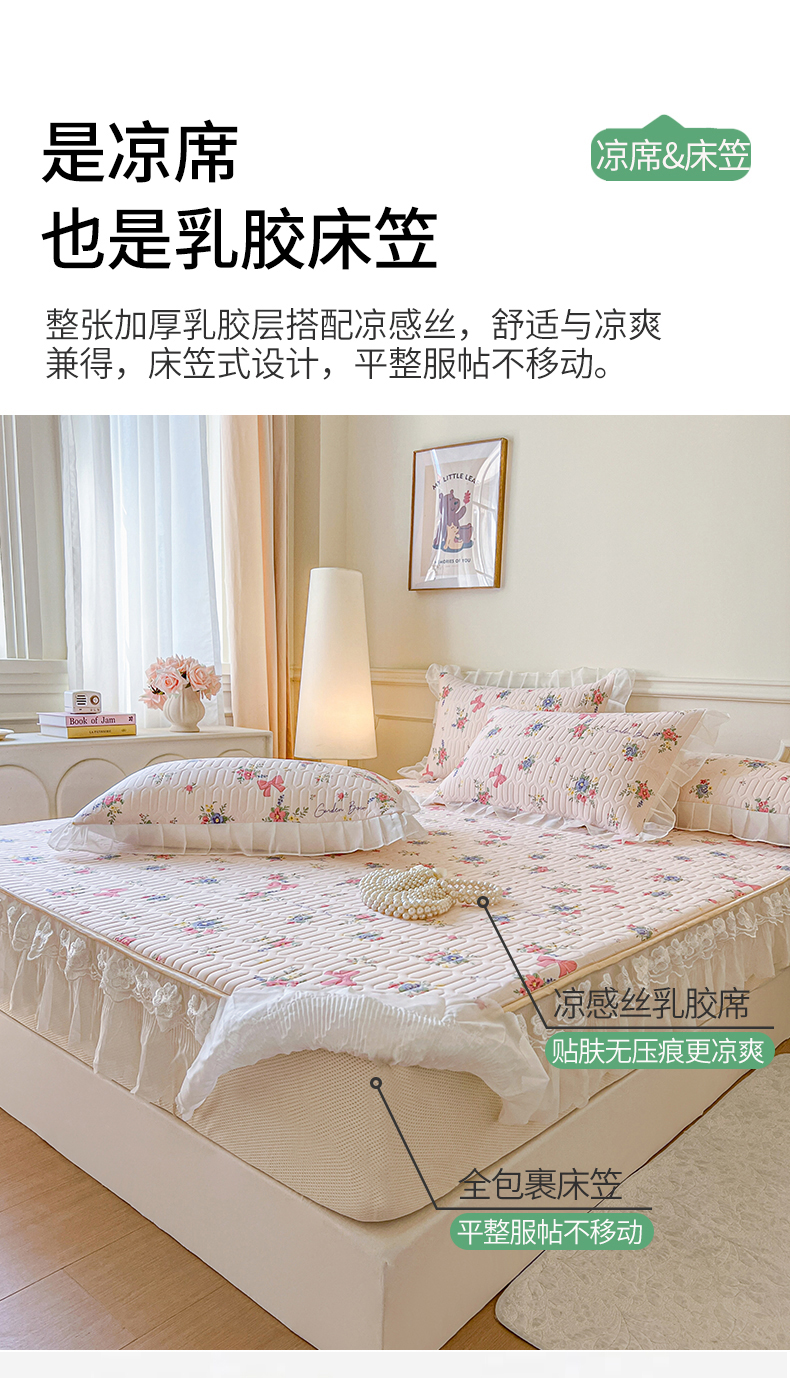 商品名称:网红馆(ck家纺) 2026新款凉感丝床笠式床裙款乳胶乳印花凉席 蝴蝶花语 粉