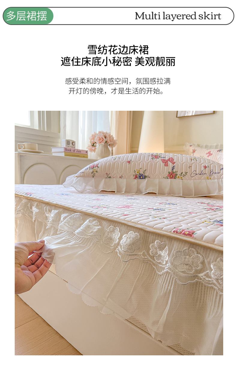 (总)网红馆(ck家纺) 2026新款全棉蕾丝花边床裙款床笠晨暮花间系列,绯红,粉色,麦绿,米色,浅紫,雾蓝