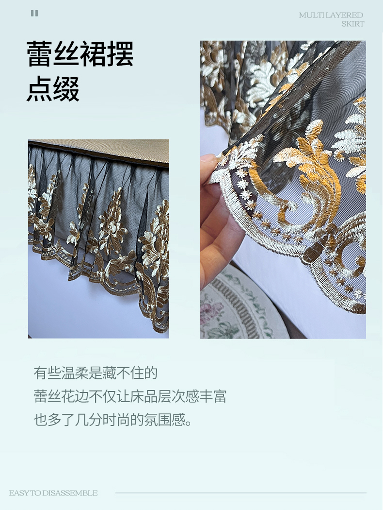 (总)网红馆(ck家纺) 2026新款色织蕾丝边床裙款床笠,宝石蓝,黛绿色,浪漫紫,奶茶色,石青,香妃粉,烟熏灰