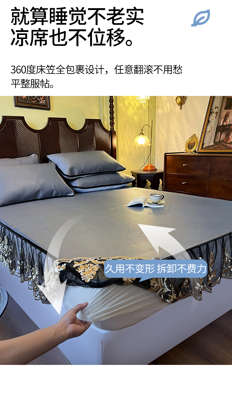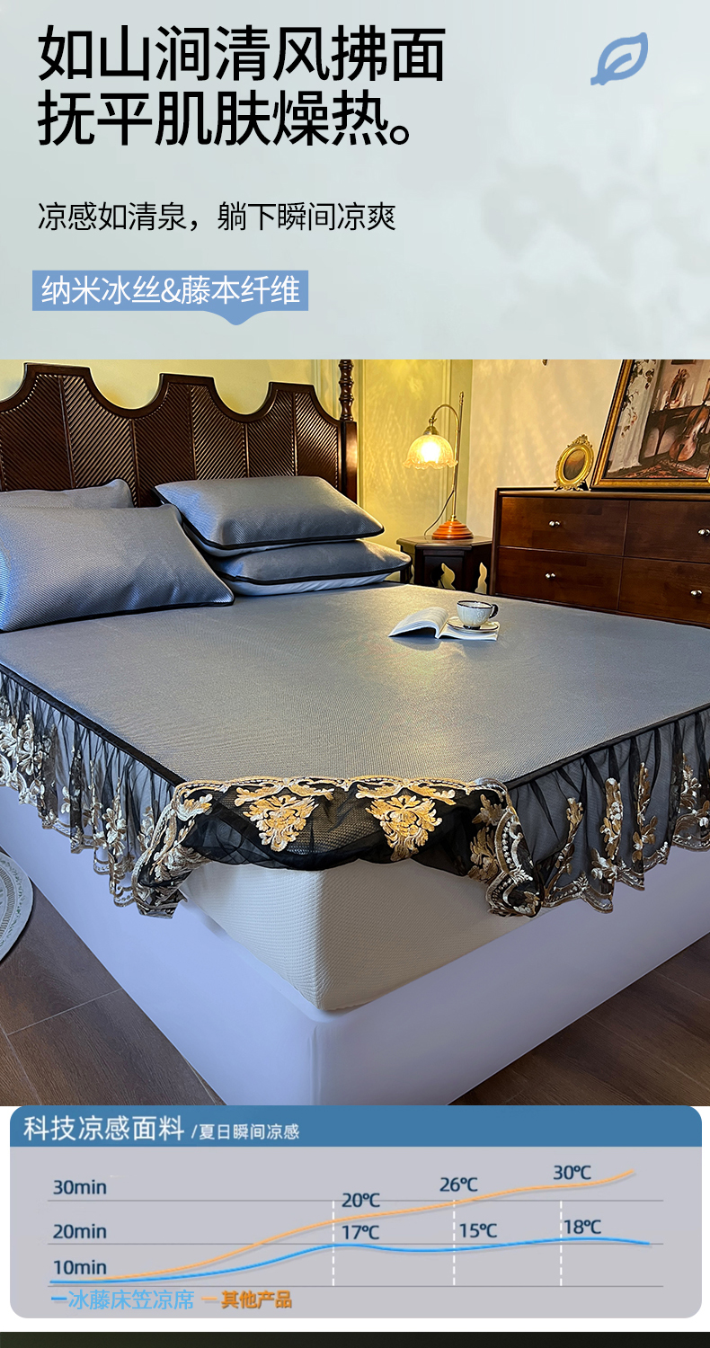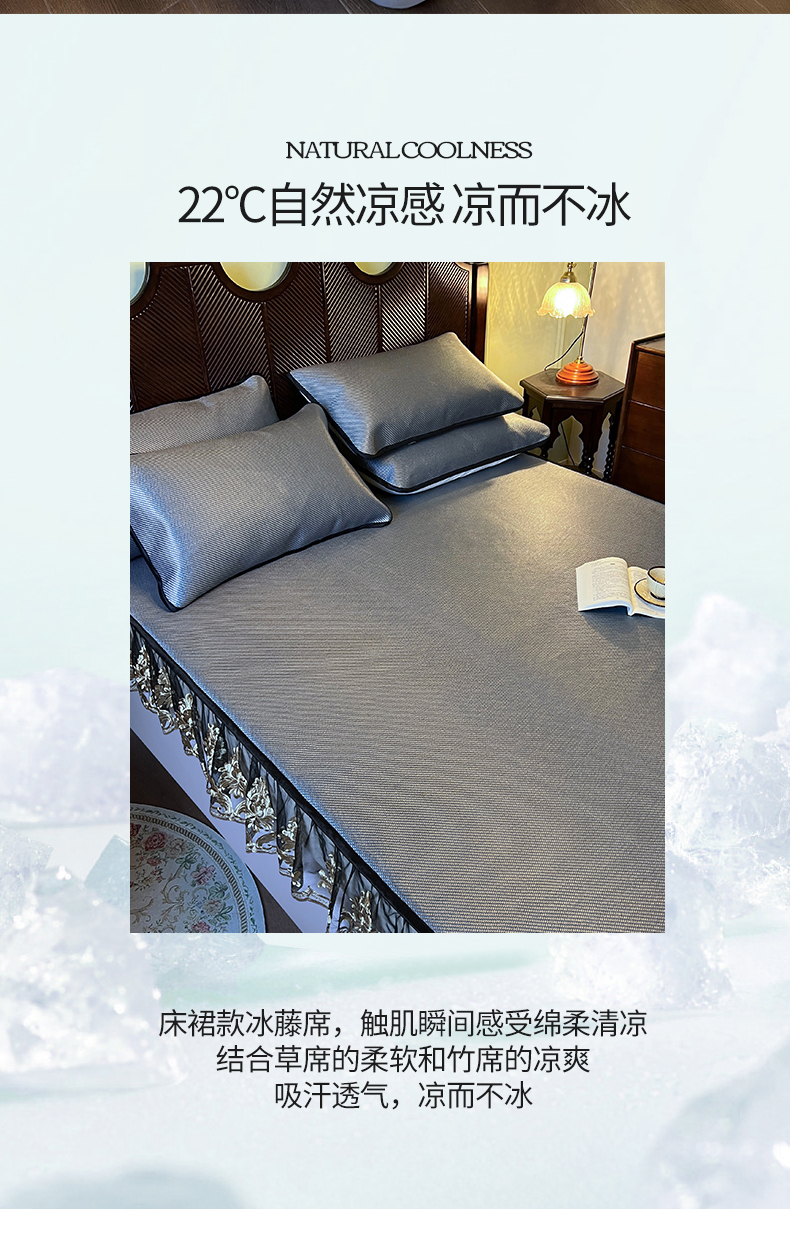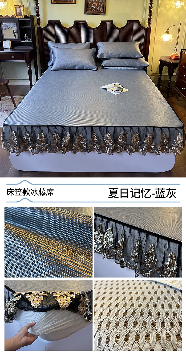 商品名称:网红馆(ck家纺) 2026新款床笠款冰藤席夏日记忆系列 蓝灰