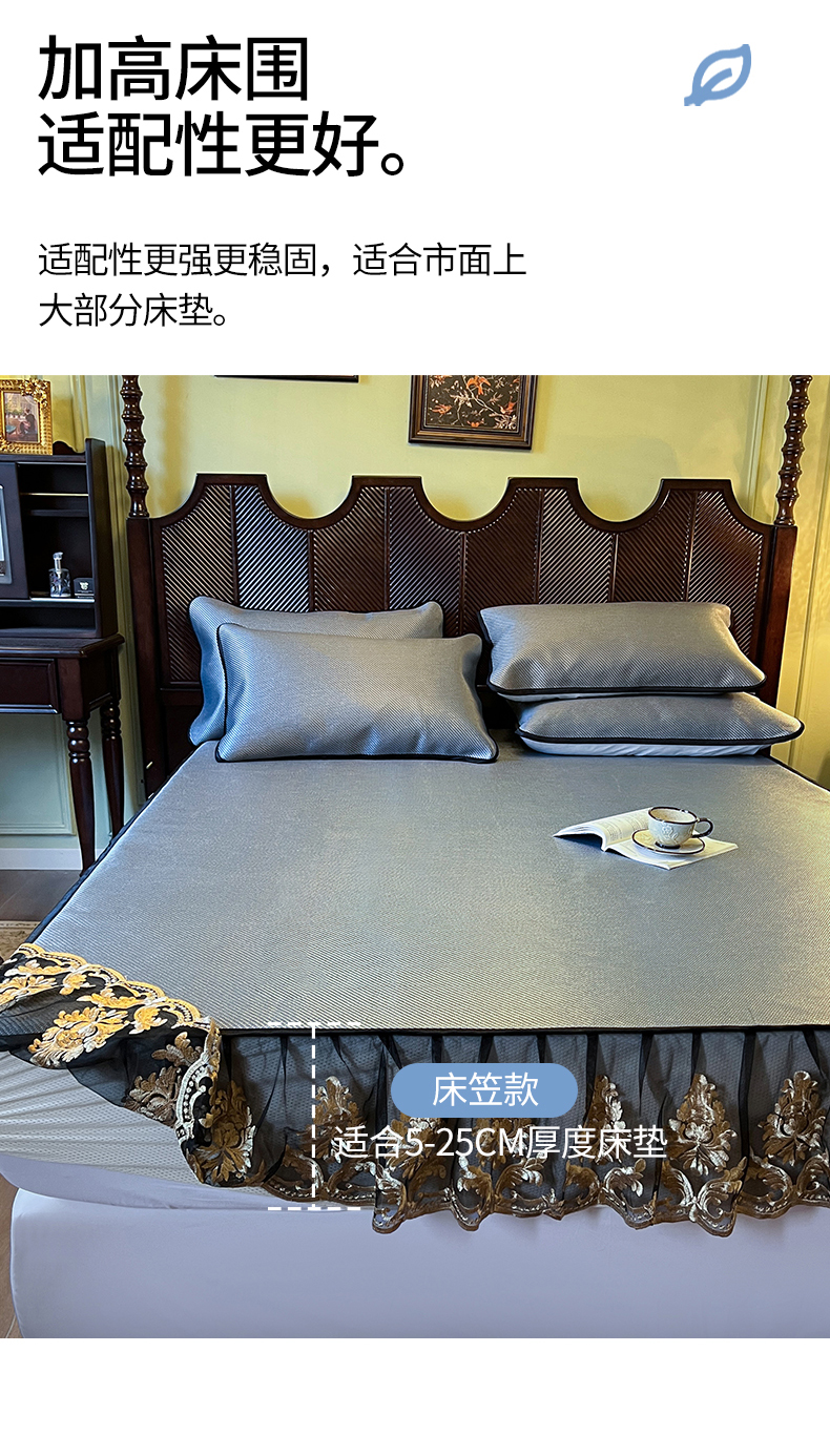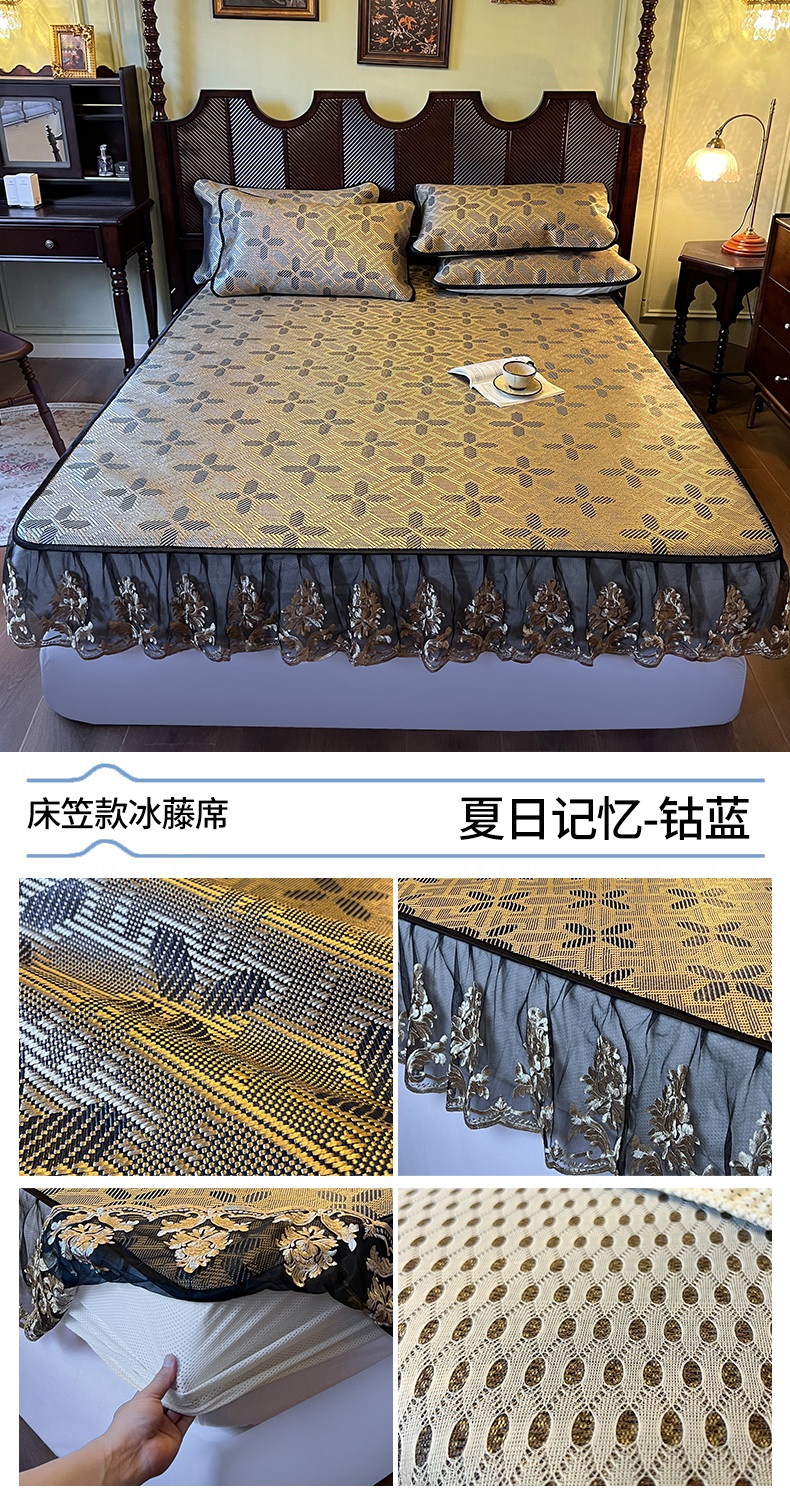 网红馆(ck家纺) 2026新款床笠款冰藤席夏日记忆系列 蓝灰