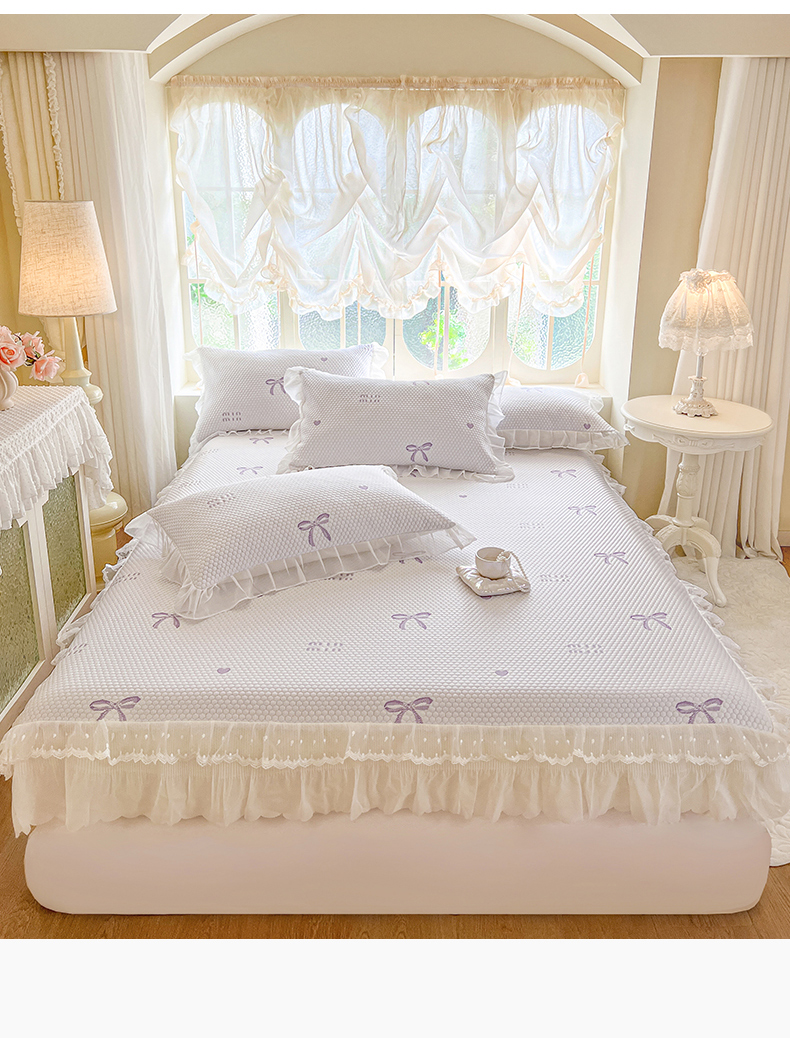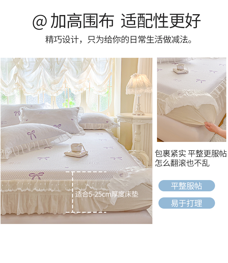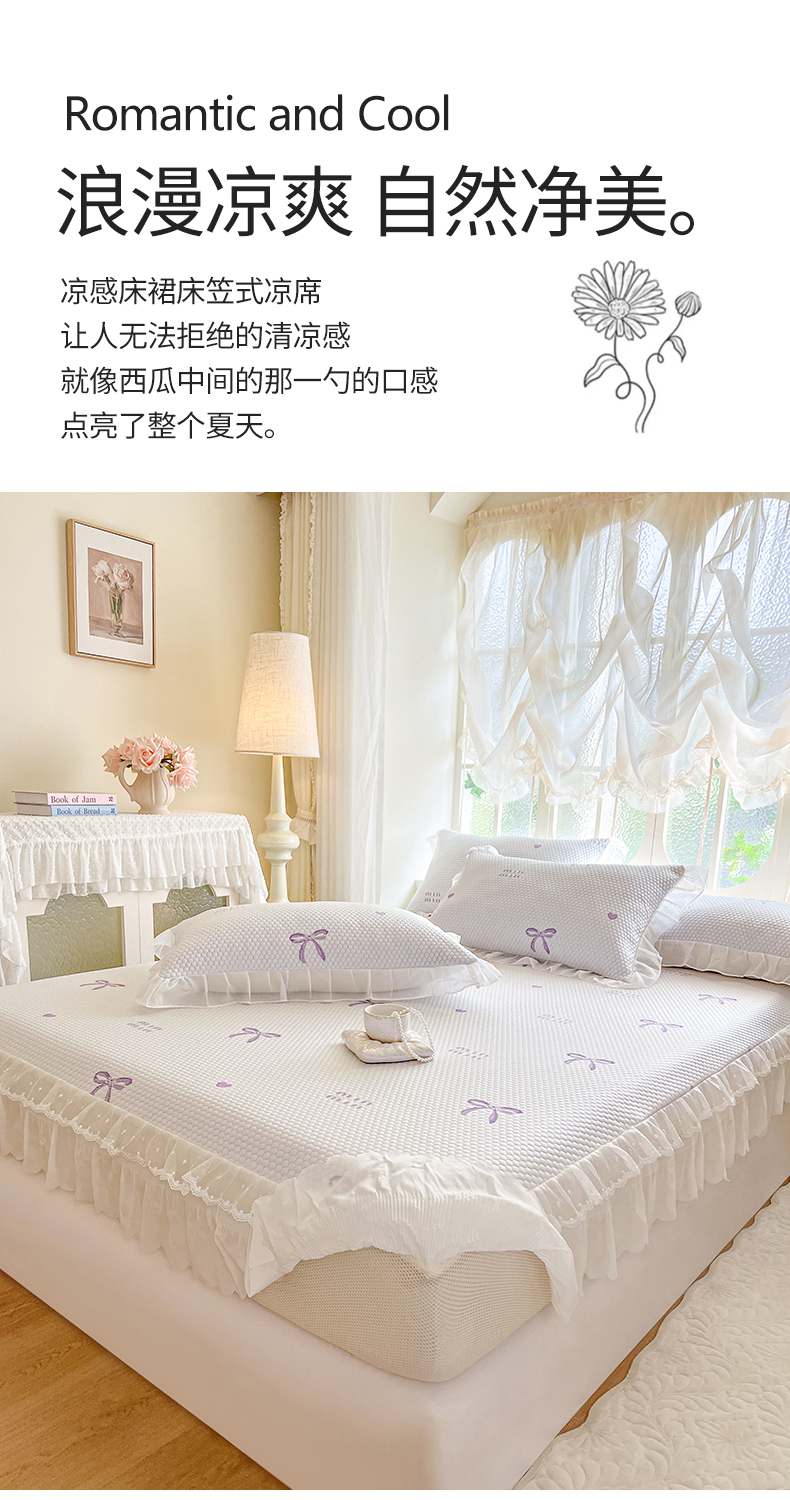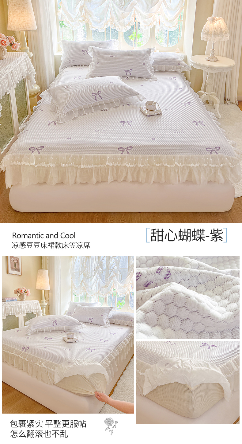 网红馆(ck家纺) 2026新款小清新床笠式床裙豆豆凉席三件套 甜心蝴蝶-紫