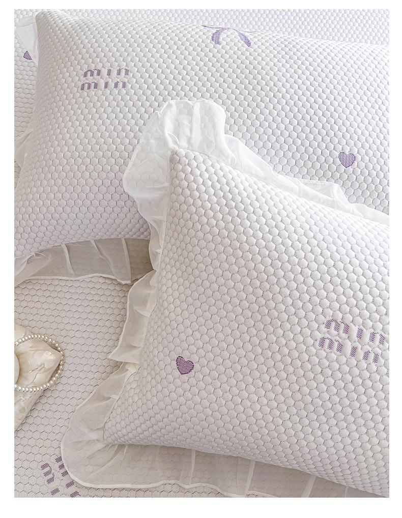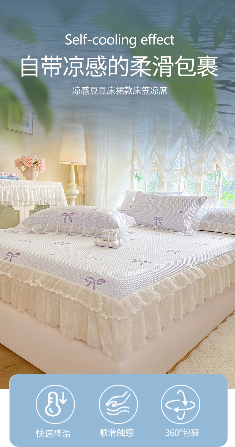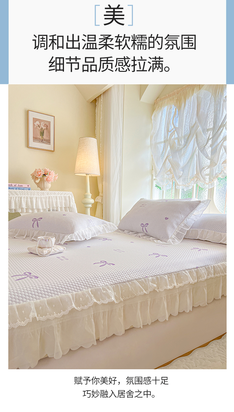 网红馆(ck家纺) 2026新款小清新床笠式床裙豆豆凉席三件套 甜心蝴蝶-紫