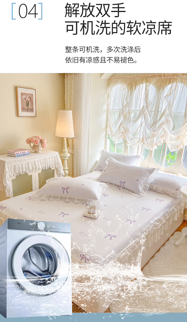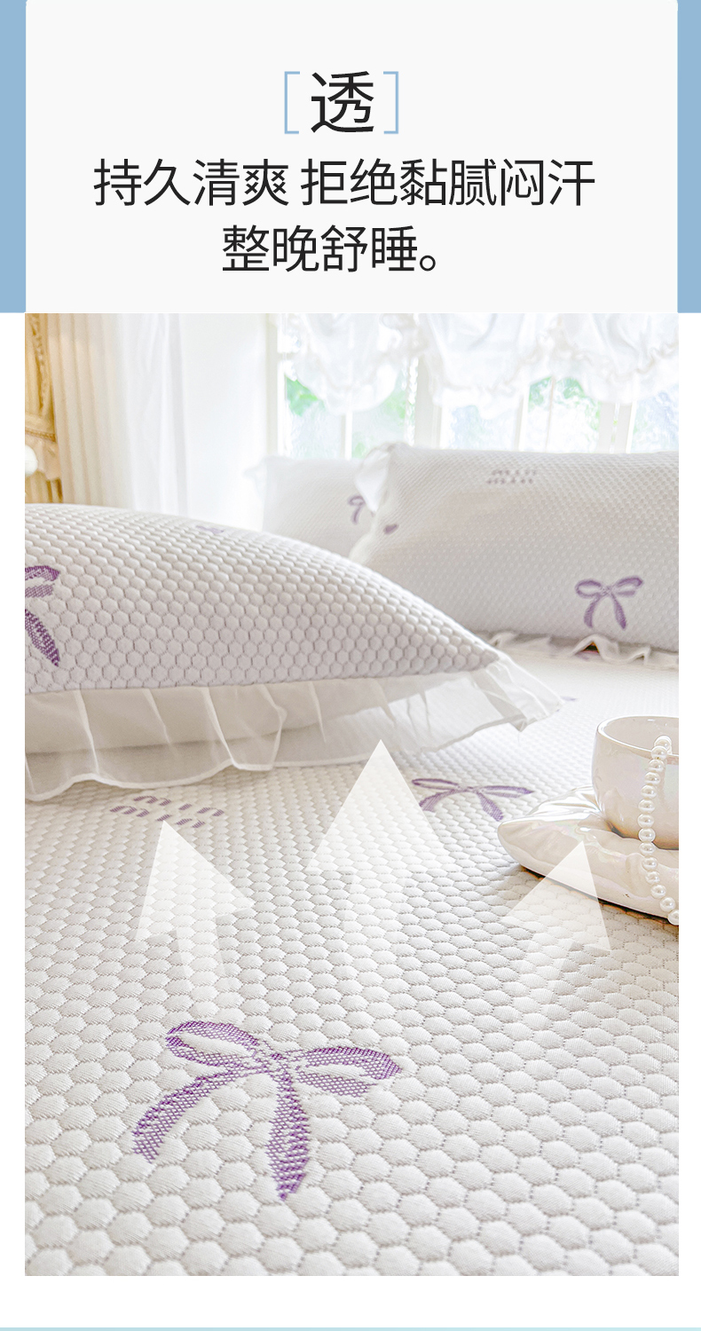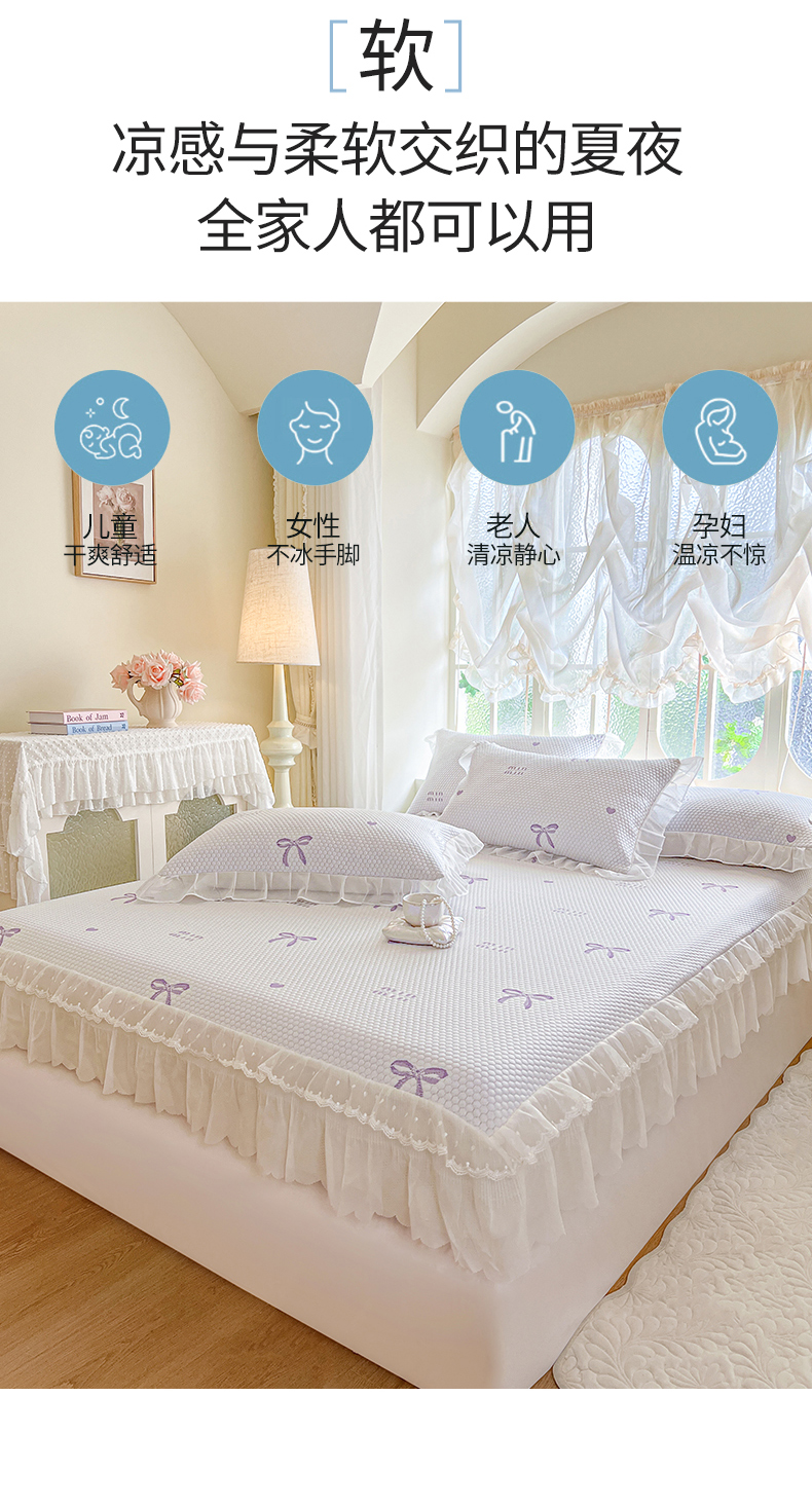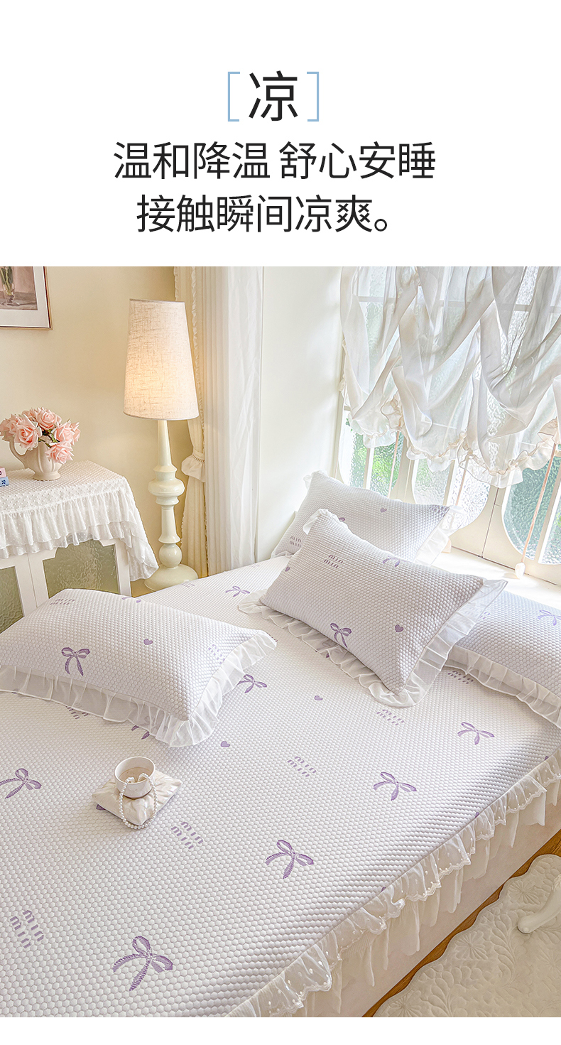 商品名称:网红馆(ck家纺) 2026新款小清新床笠式床裙豆豆凉席三件套 甜心蝴蝶-紫