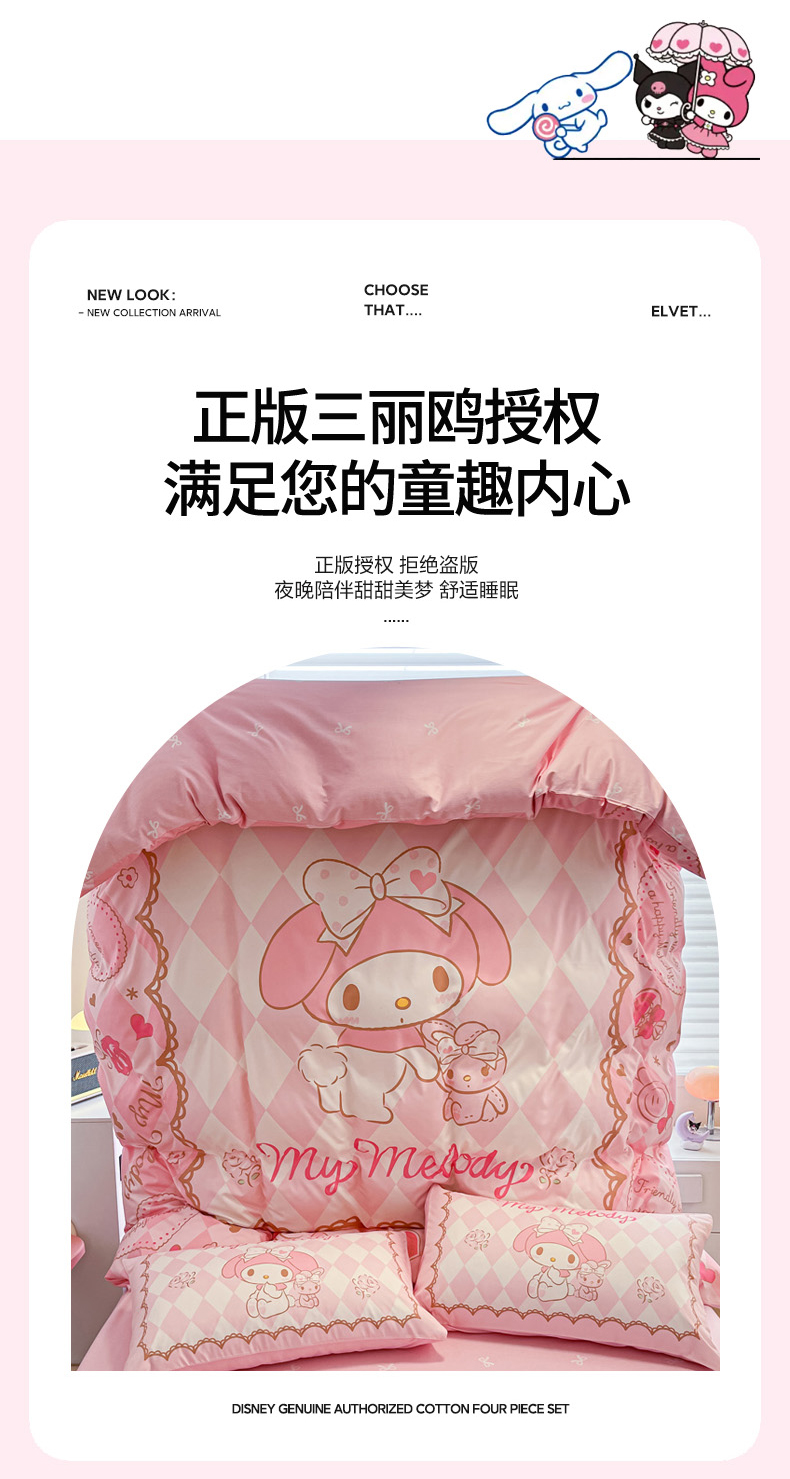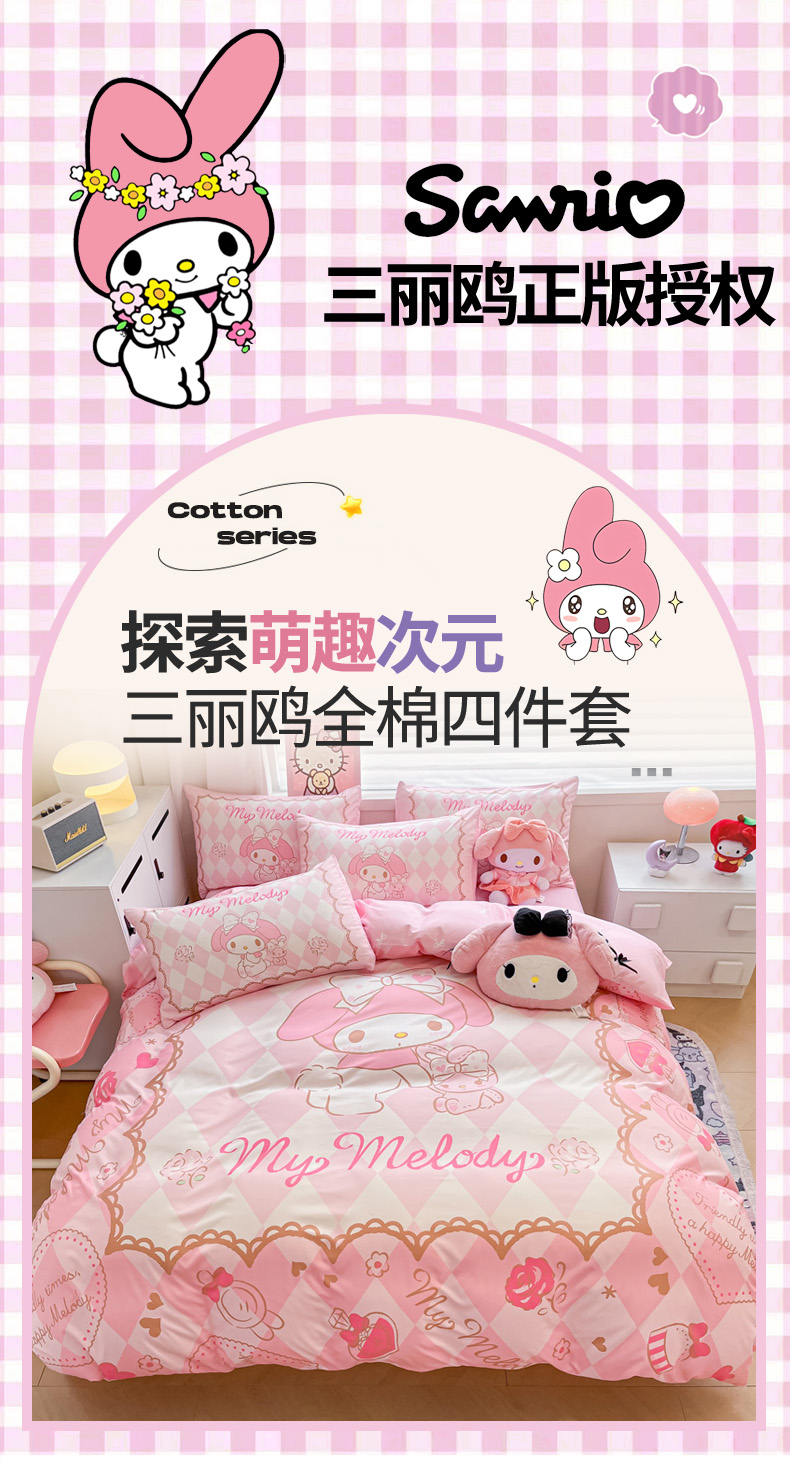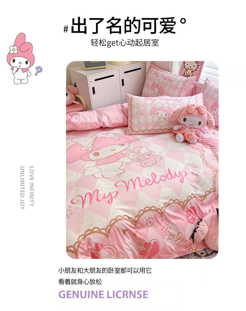 当前位置: 91家纺网 > 商品网购 > 床品套件 > 四件套 > 全棉普通四件套 > 暮思家居 2026新款正版授权三丽鸥大版全棉纯棉数码印花纯棉四件套系列-第二批(专版花型) 大版-公主美乐蒂