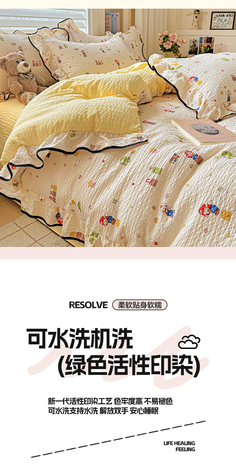 (总)芯贝儿 2026新品加厚法式泡芙棉水洗棉云感皱皱双层纱花边四件套,马上有钱,爱心蝴蝶结,彩色爱心,超级玛丽,蝶梦,快乐小熊,蓝调,萌宠,柠夏,奇奇乐园,青花,小飞马,小雪人,旋转木马