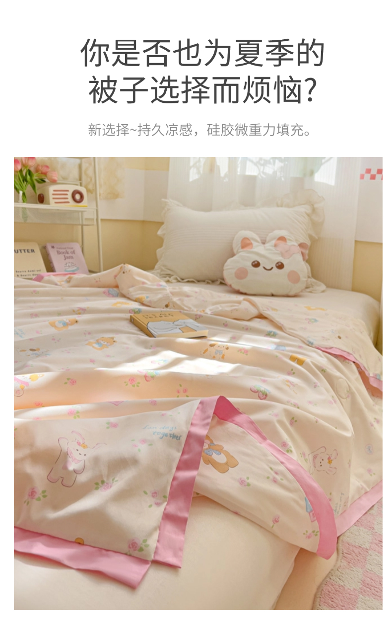 (总)十九色 2026新款液态硅胶奶嘴同源天丝棉飞边凉感夏被夏凉被空调被,小蓝心,小兔兔,草莓多多,花园里,田园趣事,小布偶