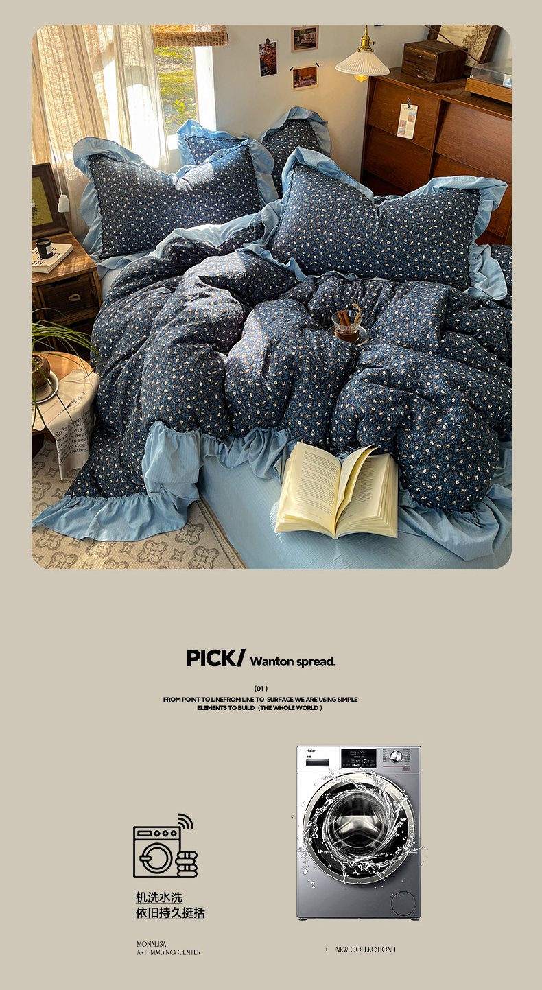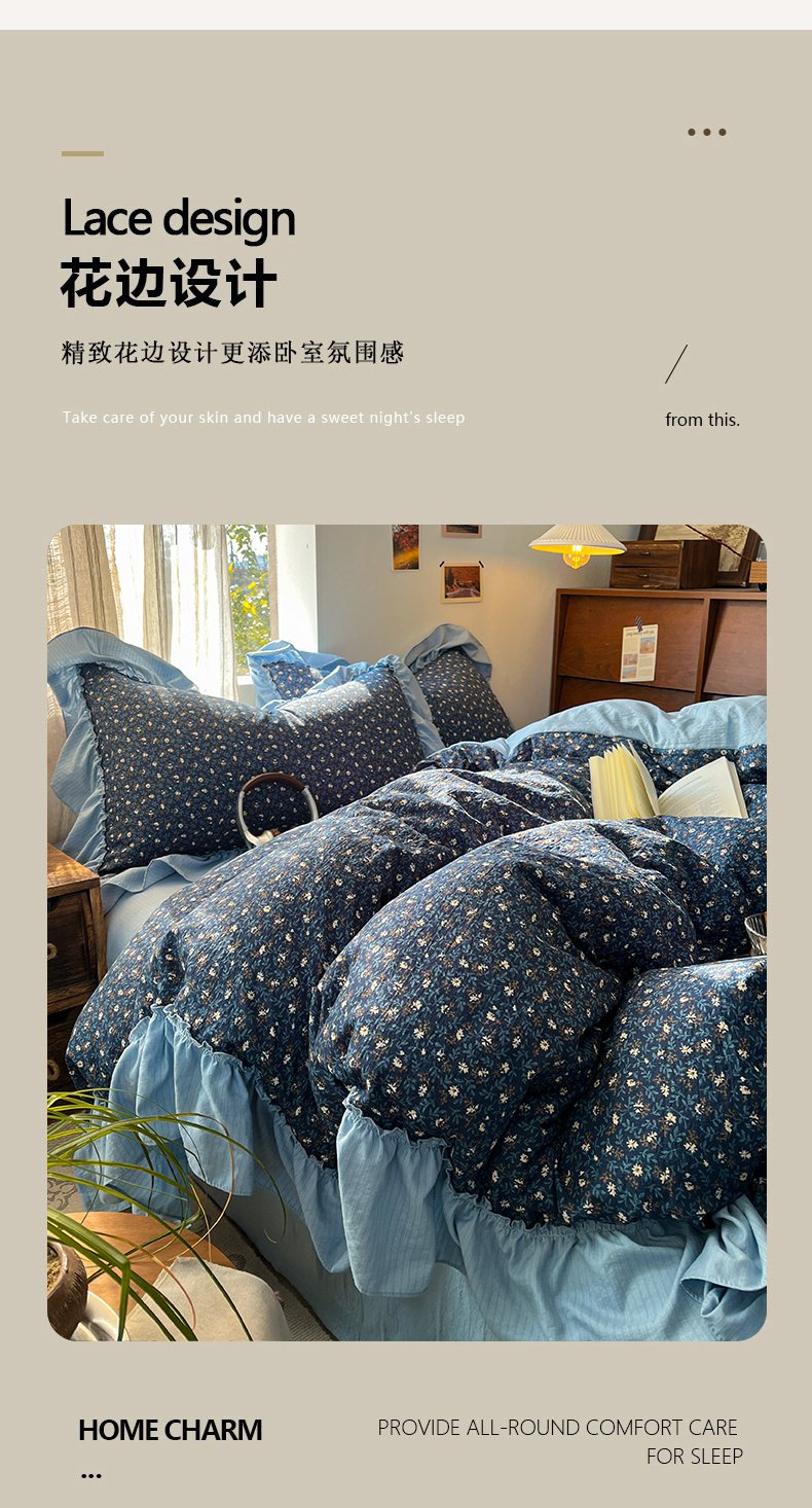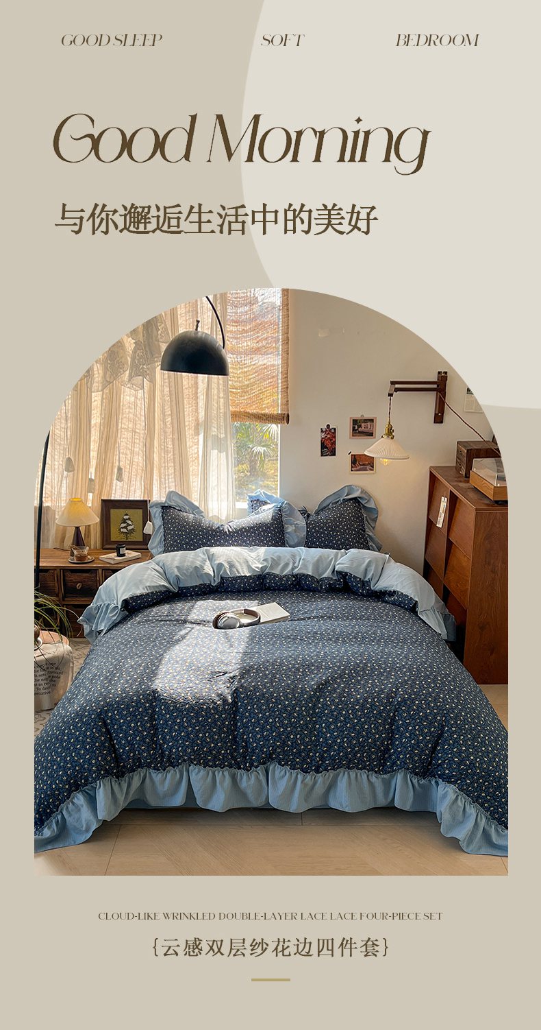 (总)欣宜家纺 2026新款荷叶花边床上四件套ins风法式少女心被套床单学生宿舍三件套