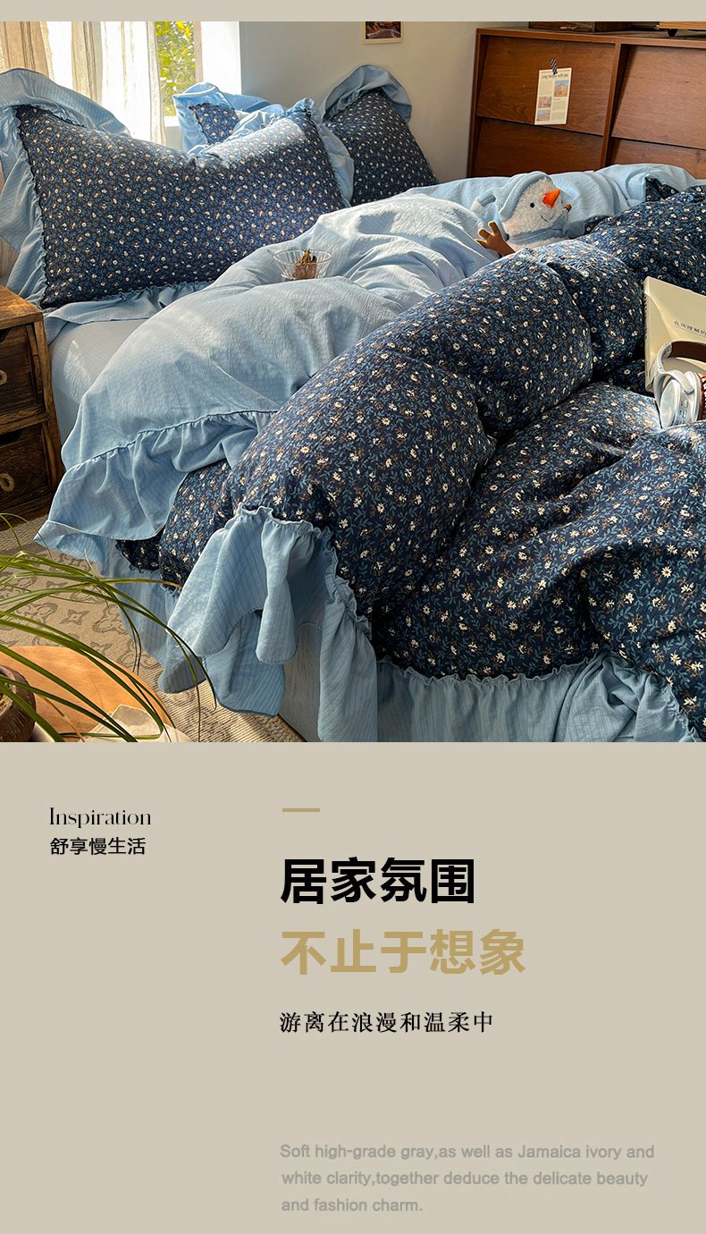 商品名称:(总)欣宜家纺 2026新款荷叶花边床上四件套ins风法式少女心被套床单学生宿舍三件套