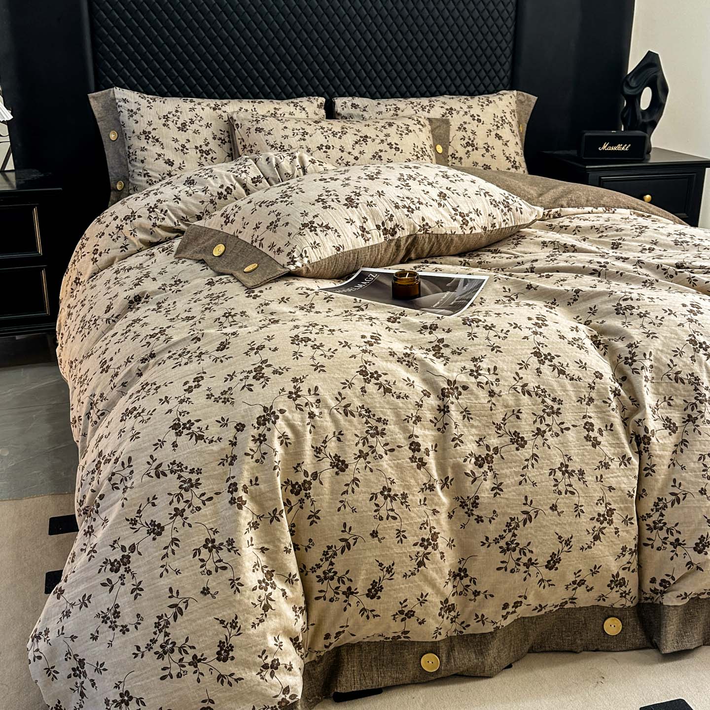 当前位置: 91家纺网 > 商品网购 > 床品套件 > 四件套 > 其它四件套 > 晚爱家纺(原晚安家居) 2026新款加厚双层纱原麻纽扣款四件套 约定咖