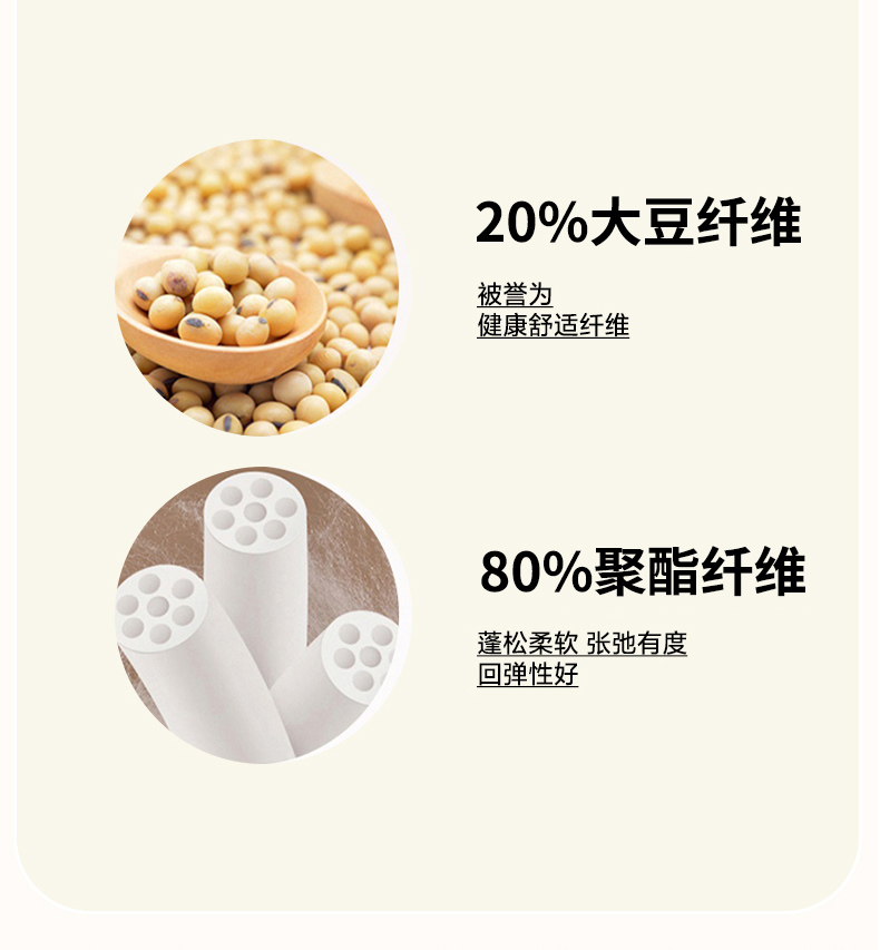 填充纤维种类: 大豆蛋白改性聚酯纤维