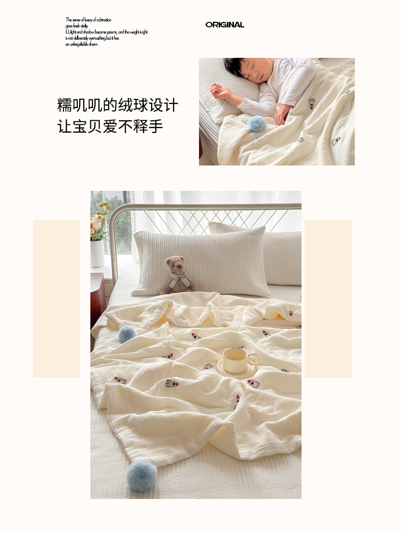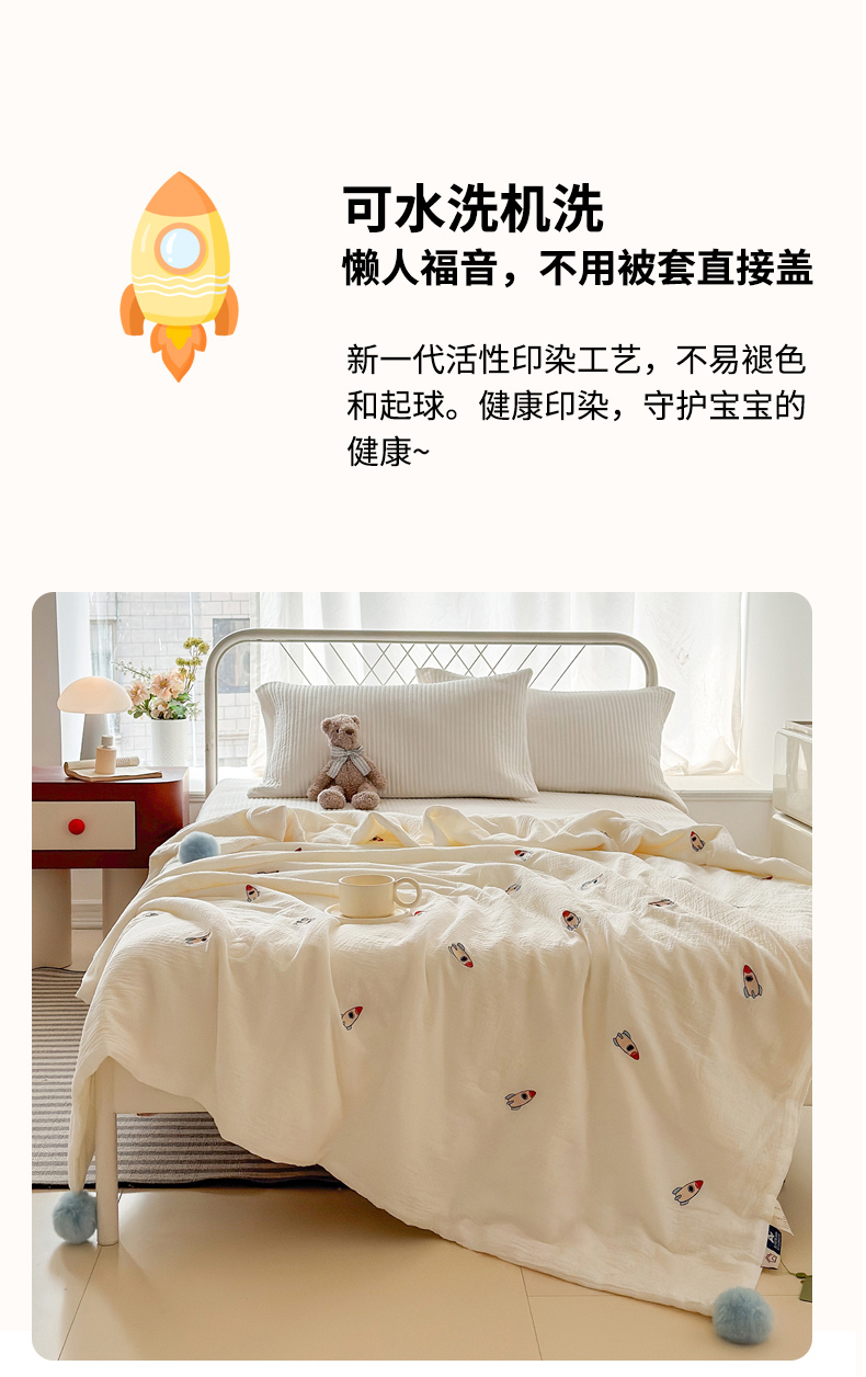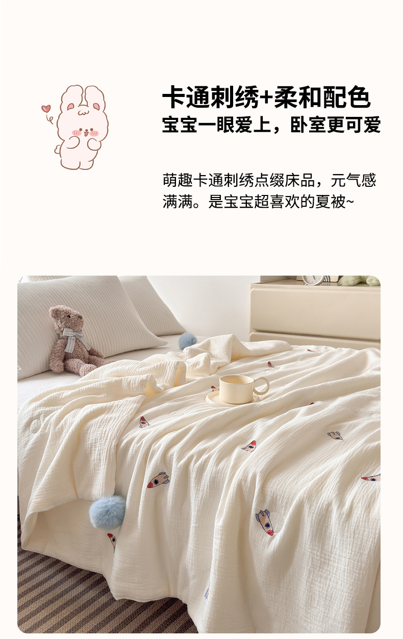 (总)木楌 2025年新款双层皱皱纱刺绣款夏被大豆被,蓓蕾,小飞象,蝴蝶结,领结兔,枇杷叶,三叶草,小樱桃,幸运熊