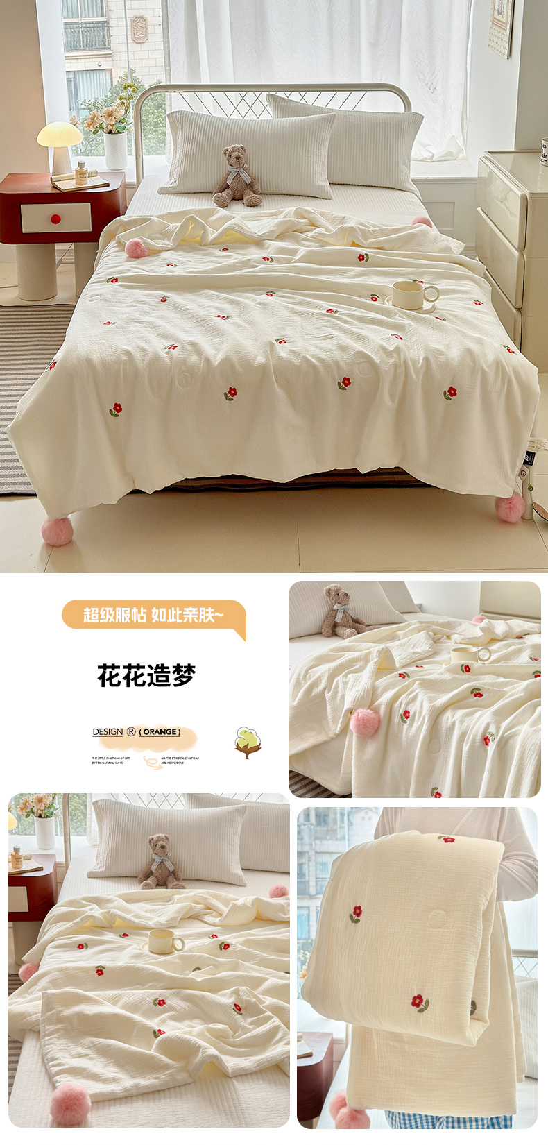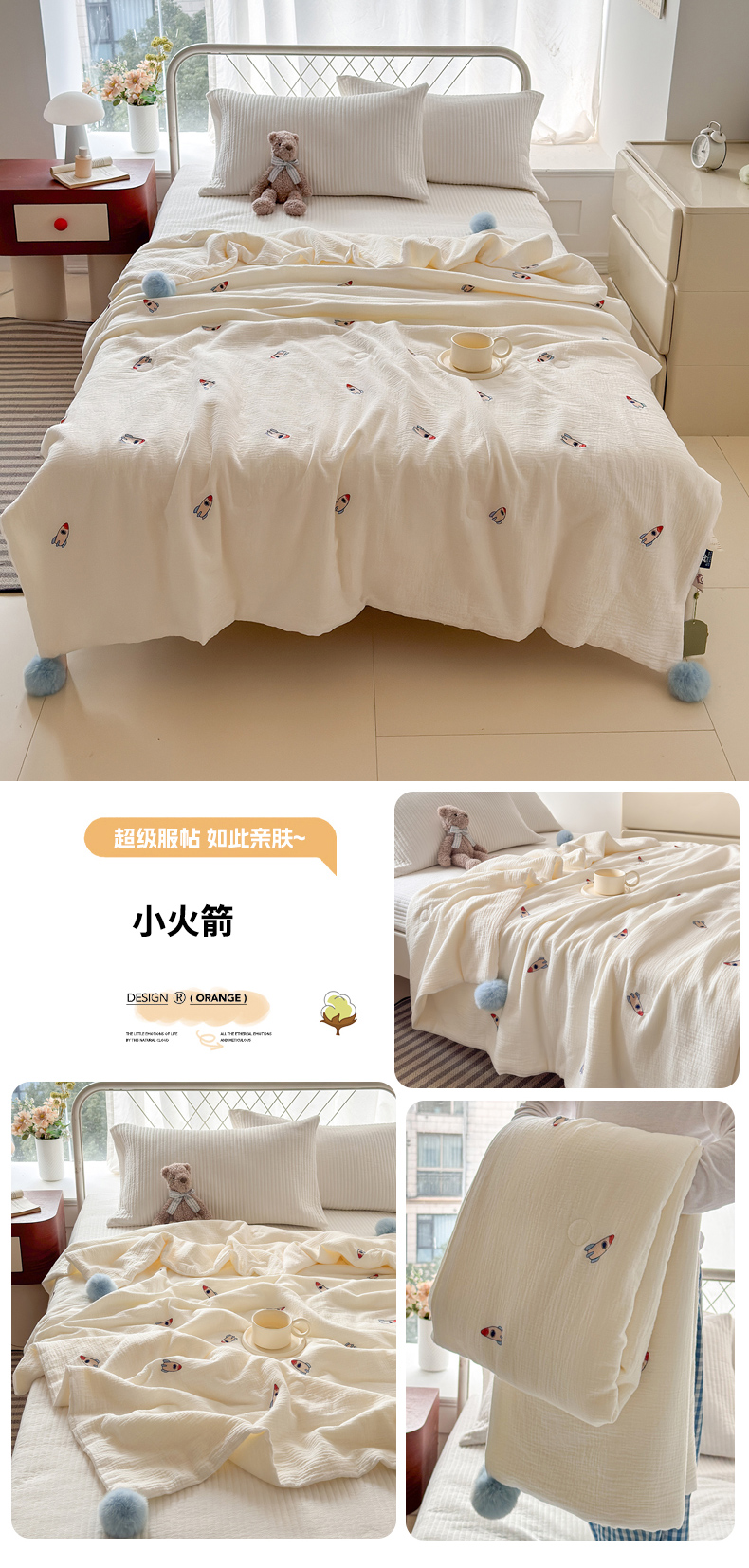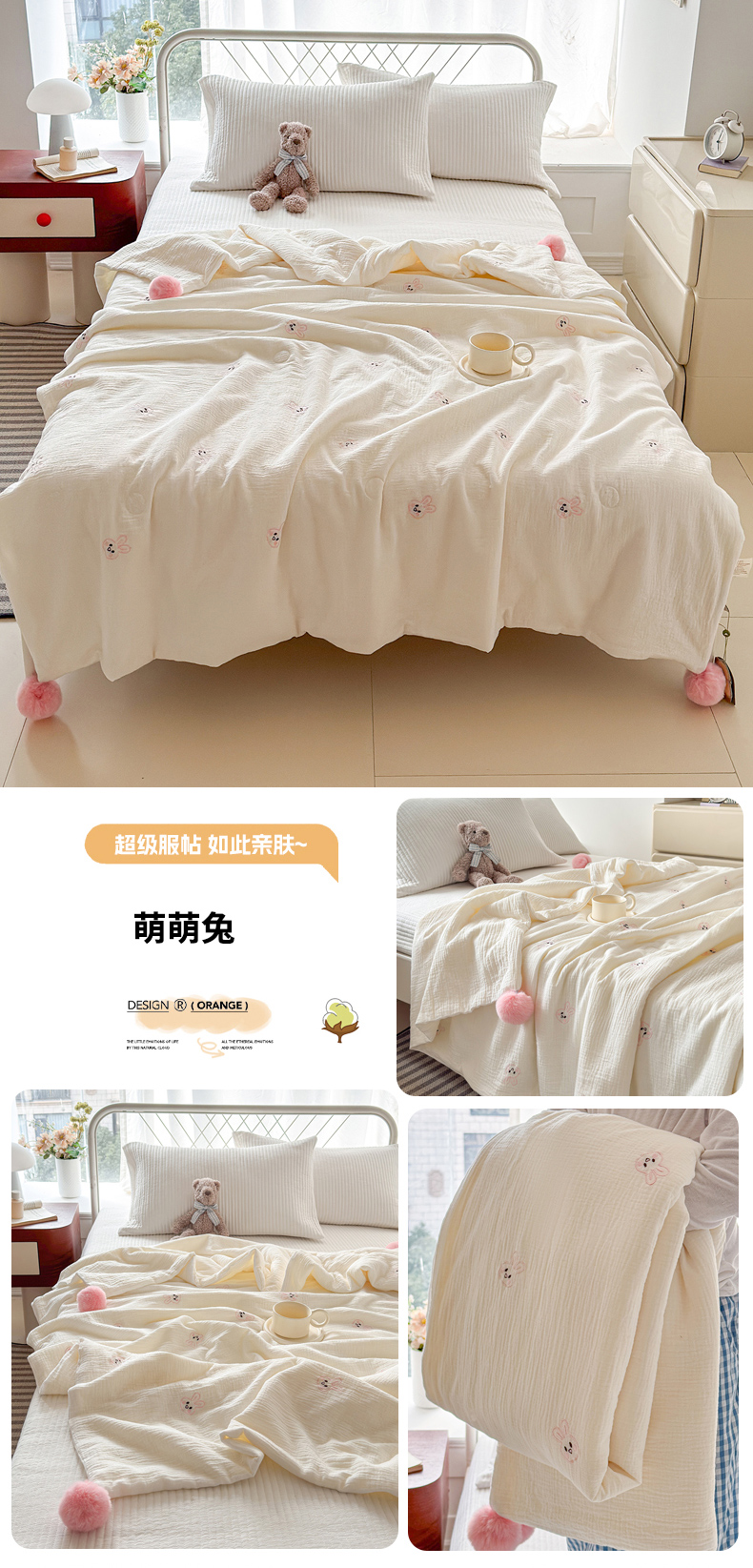 (总)木楌 2025年新款双层皱皱纱刺绣款夏被大豆被,蓓蕾,小飞象,蝴蝶结,领结兔,枇杷叶,三叶草,小樱桃,幸运熊