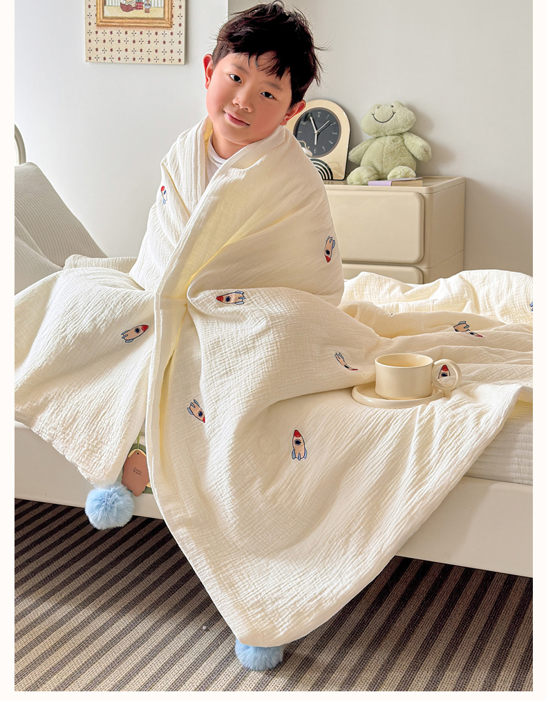 (总)木楌家居 2026新款全棉皱皱纱儿童款夏被床盖四件套