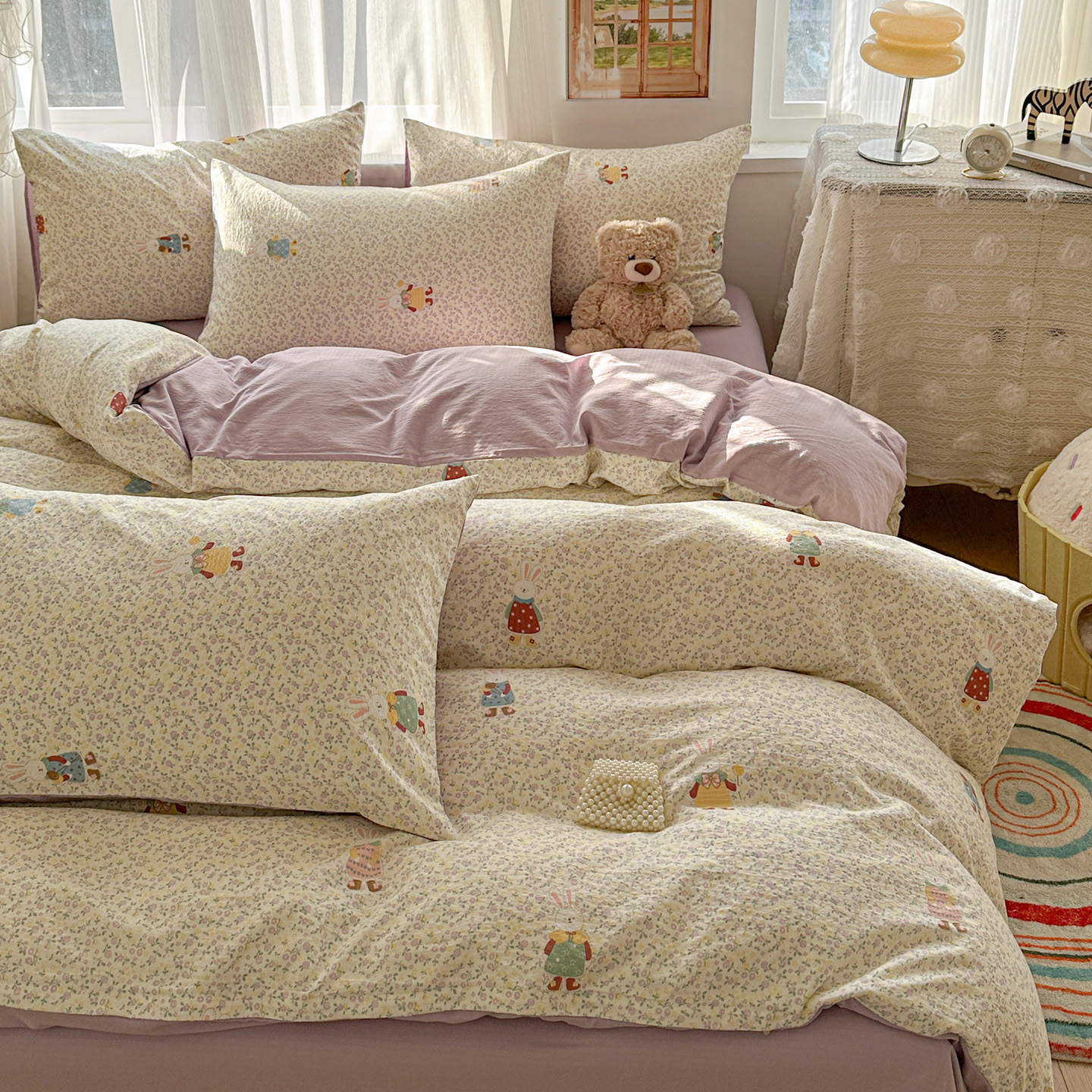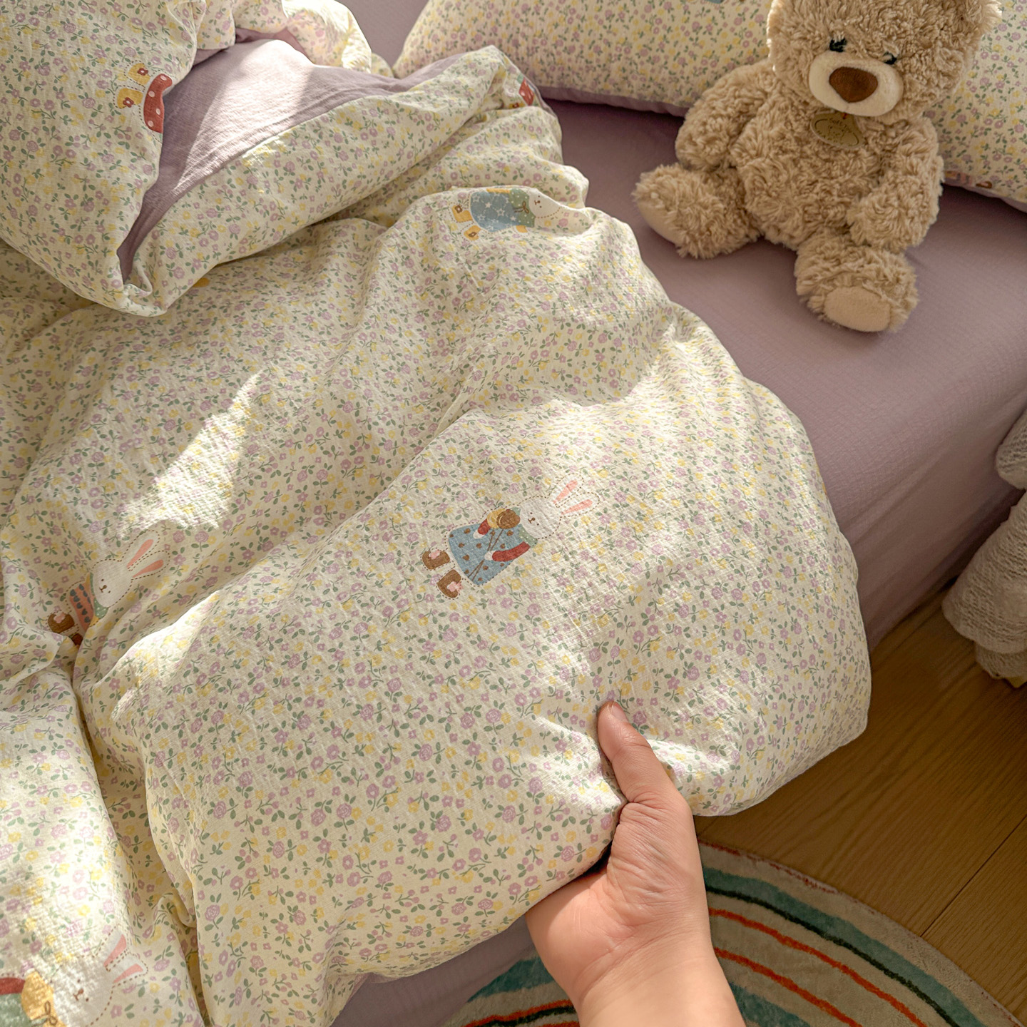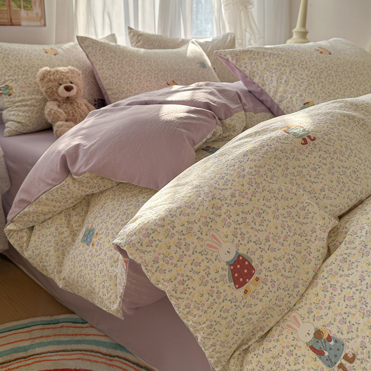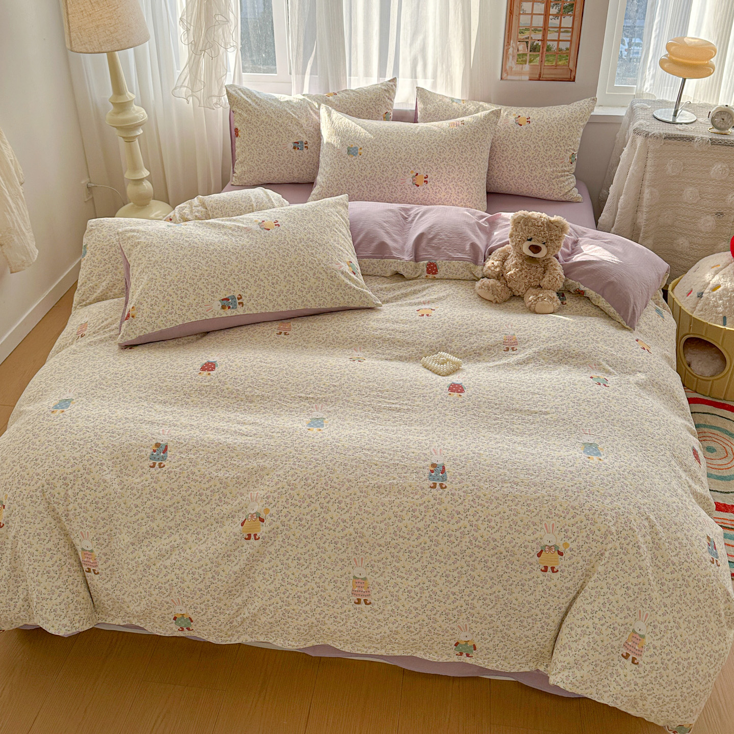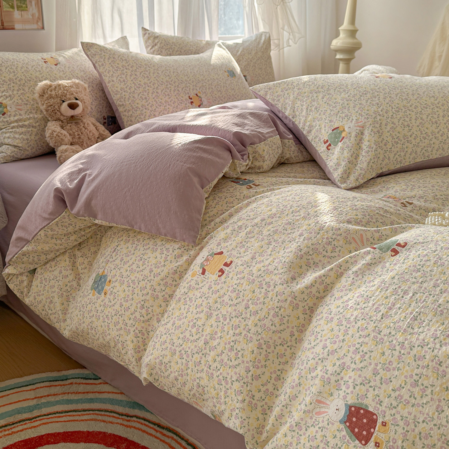 当前位置: 91家纺网 > 商品网购 > 床品套件 > 四件套 > 其它四件套 > 赫然家纺 2026春夏新款云感皱皱纱四件套套件 花海兔